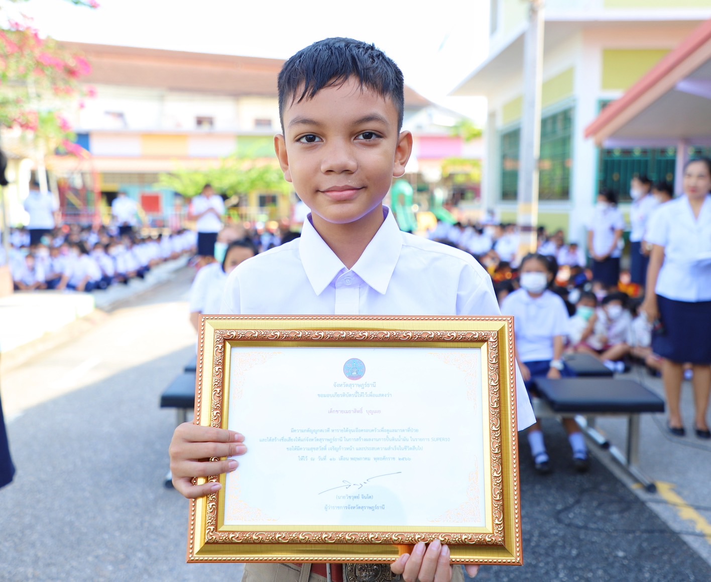 ช่วงเช้าวันนี้( 31 พ.ค.66) ที่โรงเรียนมานิตานุเคราะห์ อำเภอเมือง จังหวัดสุราษฎร์ธานี นายวิชวุทย์ จินโต ผู้ว่าราชการจังหวัดสุราษฎร์ธานี เดินทางมามอบประกาศเกียรติคุณ เพื่อยกย่องเชิดชู เด็กชายเมธาสิทธิ์ บุญเผย หรือน้องข้าวปั้น นักเรียนชั้นประถมศึกษาปีที่ 5 ในฐานะ บุคคลซึ่ง มีความกตัญญูกตเวที และสร้างชื่อเสียงให้กับจังหวัดสุราษฎร์ธานี จากการแสดงฝีมือในงานปั้นดินน้ำมัน ทางรายการซุปเปอร์เท็น เพื่อหารายได้จุนเจือครอบครัว เนื่องจากมารดา ป่วยเป็นโรคมะเร็ง โดยมี นายโชคดี ศรัทธากาล ศึกษาธิการจังหวัดสุราษฎร์ธานี คณะกรรมการสถานศึกษา ผู้ทรงคุณวุฒิ ผู้บริหาร คณะครู และนักเรียน ร่วม เป็นสักขีพยานและแสดงความยินดี