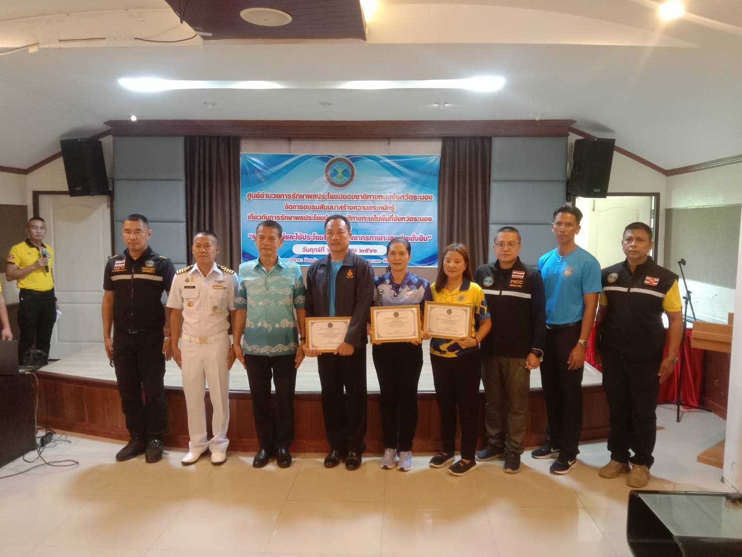 เมื่อเวลา 09.00 น. วันที่ 2 มิถุนายน 2566 นี้ ผู้สื่อข่าวรายงานว่า นายชนาวุธ คุณเมธี ประชาสัมพันธ์จังหวัดระนอง เปิดเผยว่า . ณ ภูธารารีสอร์ท อำเภอเมืองระนอง ศูนย์อำนวยการรักษาผลประโยชน์ของชาติทางทะเลจังหวัดระนองจัดกิจกรรมสร้างความตระหนักรู้ในพื้นที่จังหวัดระนอง ครั้งที่ 2 ประจำปีงบประมาณ พ.ศ.2566 หัวข้อ“การอนุรักษ์และใช้ประโยชน์จากทรัพยากรทางทะเลอย่างยั่งยืนในพื้นที่จังหวัดระนอง” โดยมี นายบุญชัย สมใจ รองผู้ว่าราชการจังหวัดระนอง เป็นประธานเปิดการประชุม นาวาเอก มนพ ประดิษฐ์ รองผู้อำนวยการศูนย์อำนวยการรักษาผลประโยชน์ของชาติทางทะเลจังหวัดระนอง ผู้อำนวยการศูนย์ประสานงานประมงชายแดนทางทะเลไทย เมียนมา หัวหน้าศูนย์ควบคุมความมั่นคงท่าเรือจังหวัดระนอง และหน่วยงานที่เกี่ยวข้องเข้าร่วมประชุม