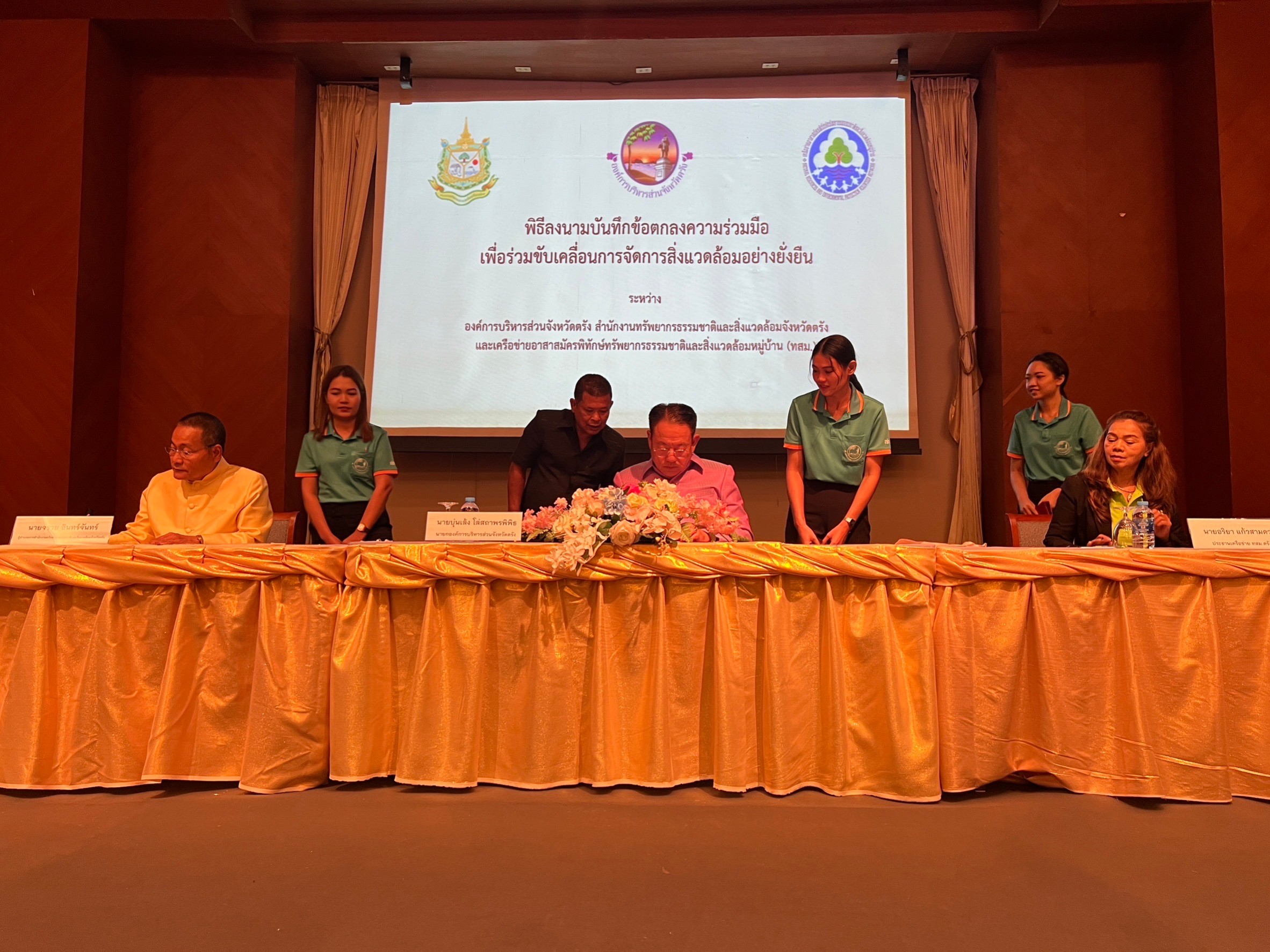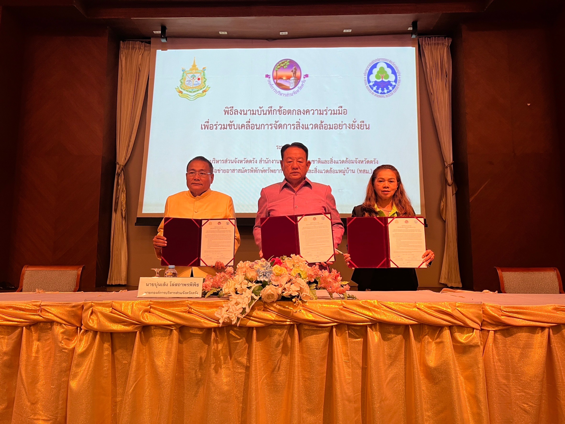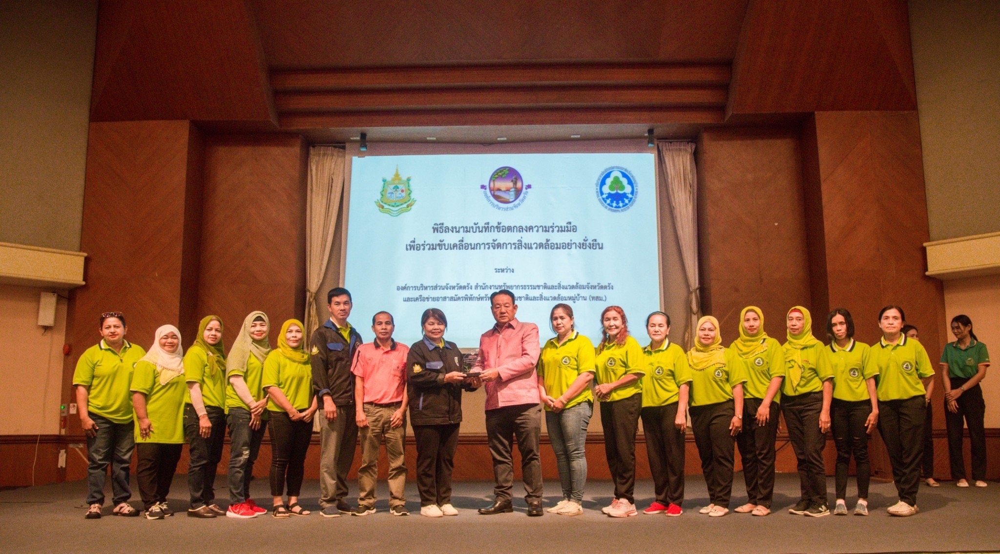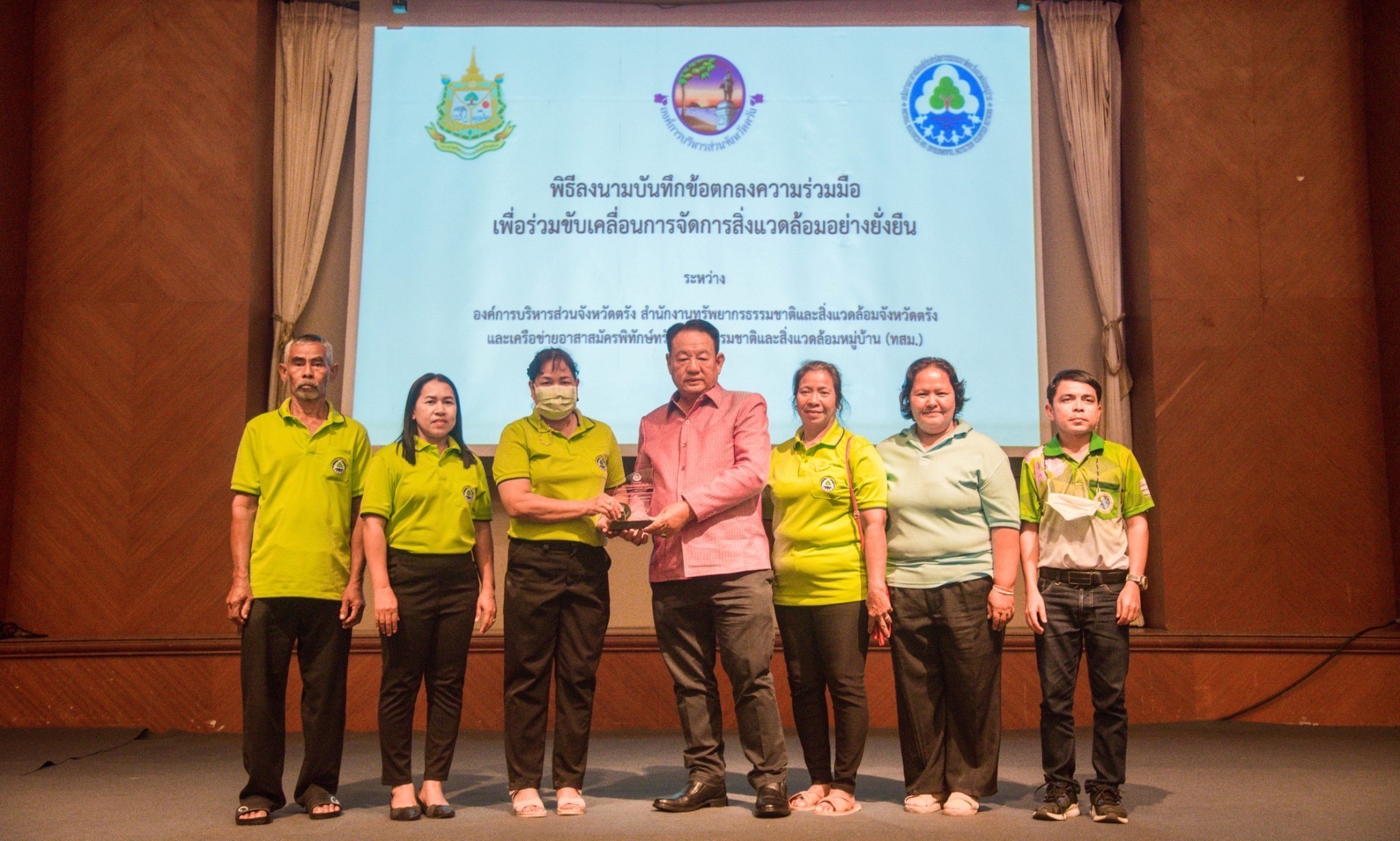 โดย นายกองค์การบริหารส่วนจังหวัดตรัง ผู้อํานวยการสํานักงานทรัพยากรธรรมชาติและสิ่งแวดล้อมจังหวัดตรังและประธานเครือข่าย ทสม.ตรัง และพิธีมอบรางวัลการประกวดการจัดการสิ่งแวดล้อมอย่างยั่งยืน เพื่อสนับสนุน ยกย่อง และเชิดชูเกียรติให้กับบุคลากรที่อุทิศตนและเสียสละในการดูแล รักษา อนุรักษ์และฟื้นฟูทรัพยากรธรรมชาติและสิ่งแวดล้อม จำนวน 9 รางวัล