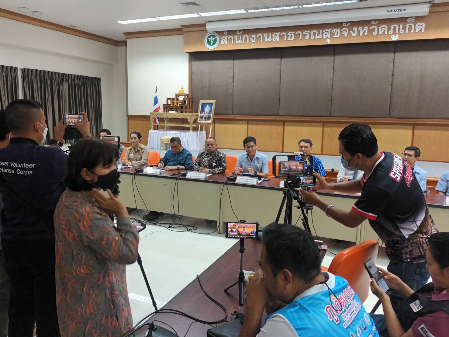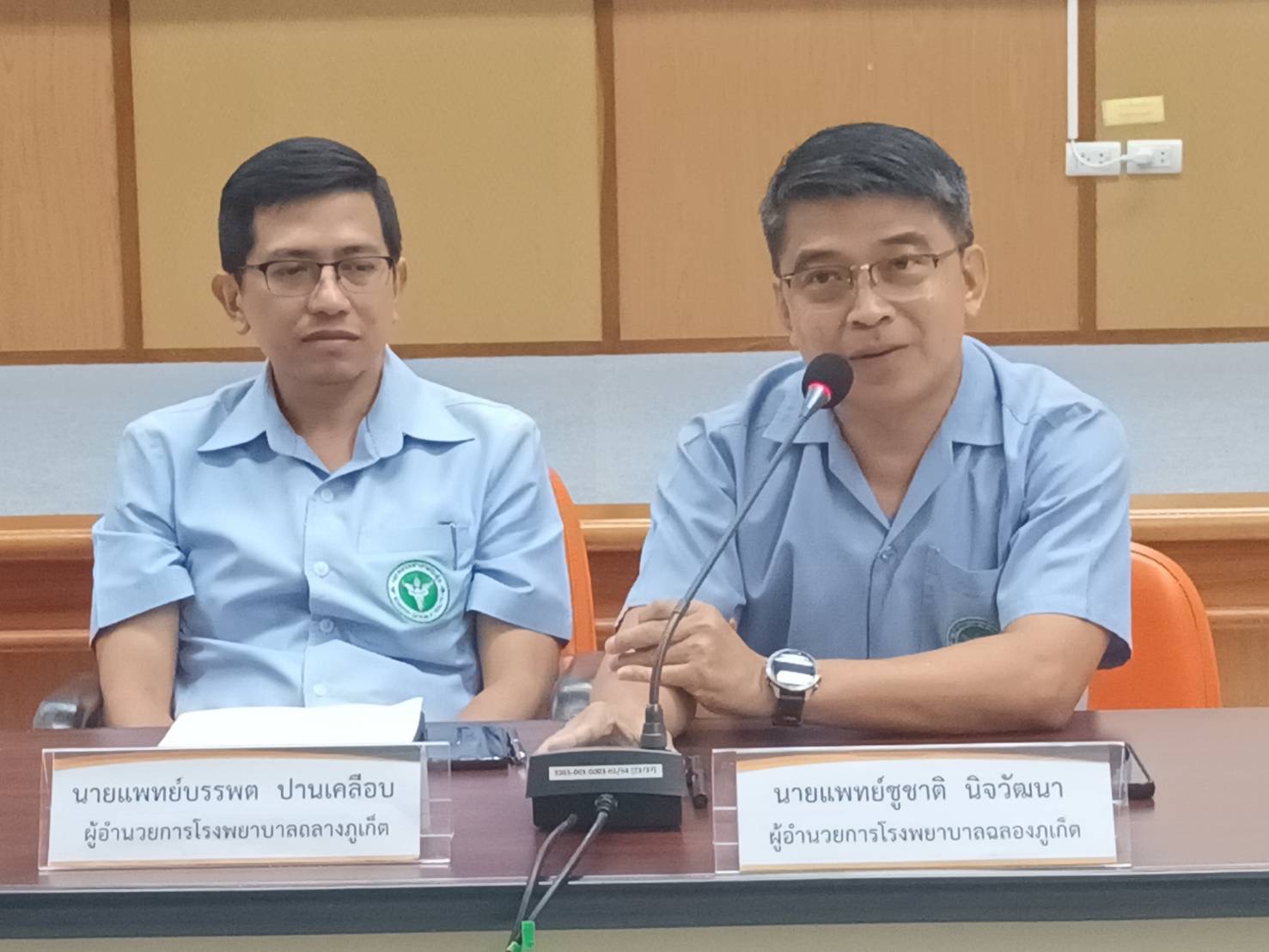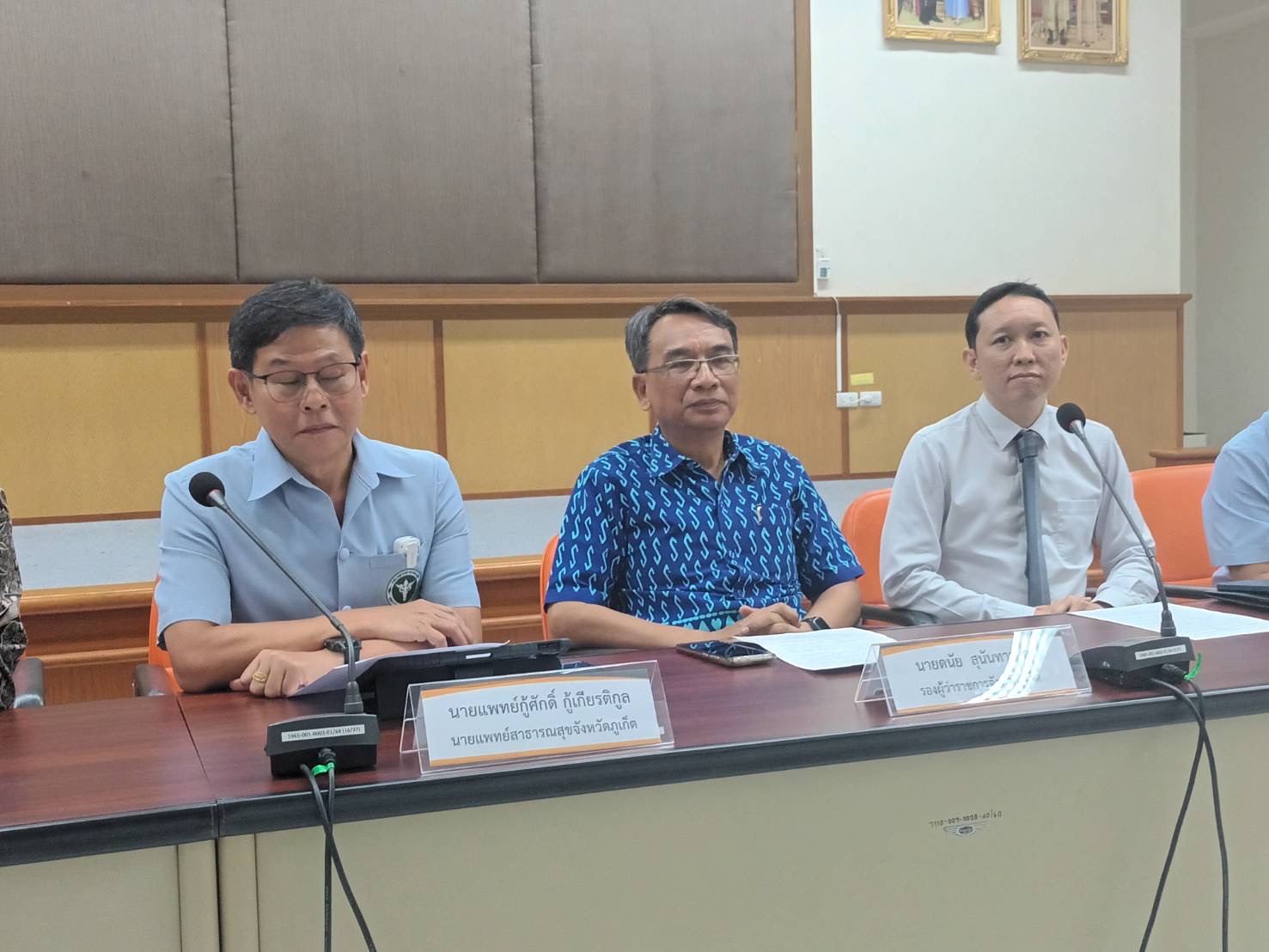 เมื่อเวลา18 .00 น. วันที่ 8 มิถุนายน 2566 นี้ ที่ห้องประชุมสำนักงานสาธารณสุขจังหวัดภูเก็ตนายณรงค์ วุ่นซิ้ว ผู้ว่าราชการจังหวัดภูเก็ต เป็นประธานการแถลงข่าวสถานการณ์โรคติดต่อระบบทางเดินอาหารและน้ำ ในจังหวัดภูเก็ตโดยมี นายแพทย์กู้ศักดิ์ กู้เกียรติกุล นายแพทย์สาธารณสุขจังหวัดภูเก็ต นายเรวัต อารีรอบ นายก อบจ.ภูเก็ต และส่วนราชการที่เกี่ยวข้องเข้าร่วม