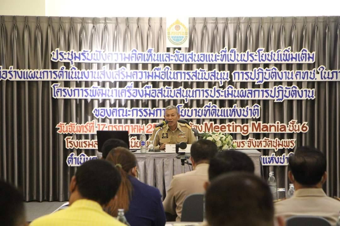เมื่อวันที่17 ก.ค. 66 นี้ นายสมพร ปัจฉิมเพ็ชร รองผู้ว่าราชการจังหวัดชุมพร เป็นประธานเปิดการประชุมรับฟังความคิดเห็นและข้อเสนอแนะที่เป็นประโยชน์เพิ่มเติม ต่อร่างแผนการดำเนินงานส่งเสริมความร่วมมือในการสนับสนุนการปฏิบัติงาน คทช. ในภาคใต้ โดยสำนักงานคณะกรรมการนโยบายที่ดินแห่งชาติ(สคทช.) จัดขึ้น เพื่อรับฟังความคิดเห็นและข้อเสนอแนะจากหน่วยงานในพื้นที่ภาคใต้ พร้อมกับให้หน่วยงานที่เกี่ยวข้องรับทราบ ต่อร่างแผนการดำเนินงานส่งเสริมความร่วมมือฯ และสามารถเป็นแนวทางในการปฏิบัติงานเพื่อให้เกิดความร่วมมือในการสนับสนุนการปฏิบัติงาน คณะกรรมการนโยบายที่ดินแห่งชาติ (คทช.) ในอนาคต โดยมีส่วนราชการ ภาคเอกชน เข้าร่วมประชุม ณ โรงแรม ลอฟท์ มาเนีย บูติค โฮเทล ชุมพร ตำบลท่าตะเภา อำเภอเมืองชุมพร จังหวัดชุมพร