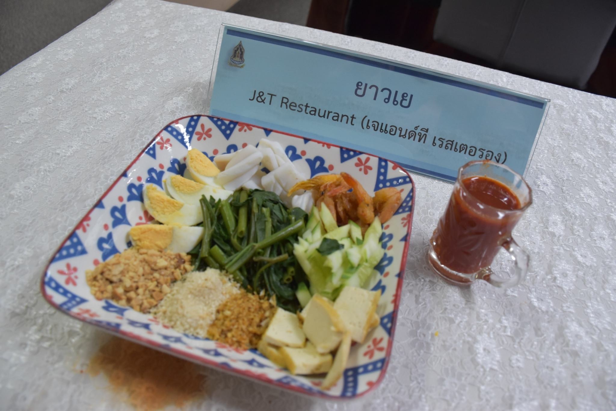 วัฒนธรรม โดยมีร้นค้าในจังหวัดระนอง ได้นำอาหารพื้นบ้านเข้าประกวดอาทิ หมูสามชั้นผัดเคยเค็ม ลอหมี่ กุ๊กซิมบี้ ปลาทูทอดกระปิทรงเครื่อง ผักเหลียงชุบไข่ ชุนเปิ้ยและยำไข่ลวกน้ำแร่ ยำกาหยู เมนูหรอยจังหู เมี้ยงกาหยูของดีที่ระนอง ยาวเย อาหารพื้นบ้านอื่นๆ เข้าร่วมประกวด ครั้งนี้ทั้งนี้เกณฑ์การให้คะแนน ประกอบด้วย ความสะอาด สุขอนามัย เครื่องเคียงและการประดับตกแต่ง วัตถุดิบ ขั้นตอนการประกอุบอาหาร และรสชาติของอาหาร โดยอาหารที่เข้าร่วมประกวดในวันนี้ มีรสชาติและเอกลักษณ์ของความเป็นท้องถิ่น มีความอร่อยและถูกสุขอนามัย ซึ่งทำจากวัตฤดิบที่มีอยู่ตามธรรมชาติของแต่ละท้องถิ่น ซึ่งอาหารที่ชนะการประกวดครั้งนี้ ได้แก่ ก๊กซิมบี้ ยาวเย และชุนเบี้ย