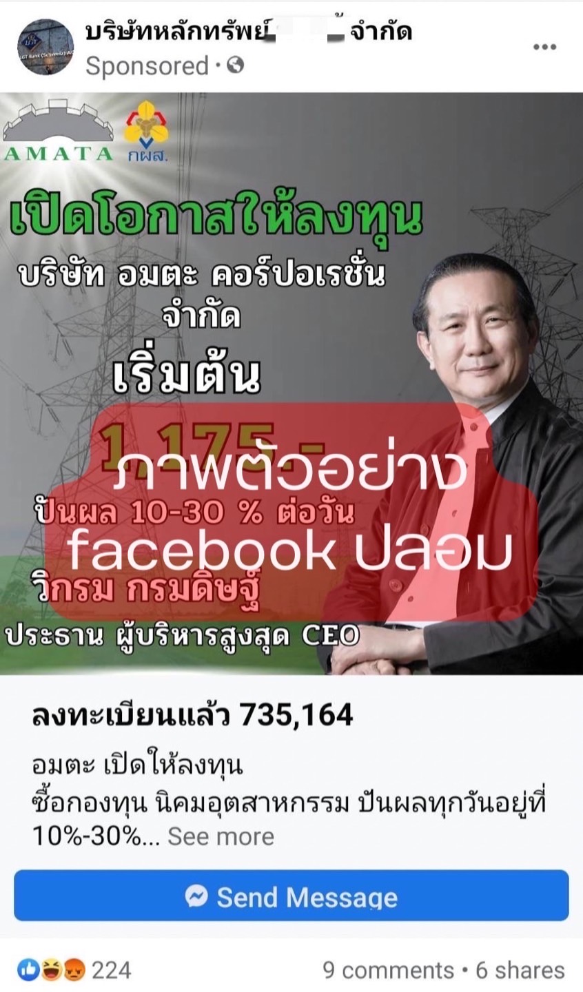 แอบอ้างชื่อ บริษัท อมตะ คอร์เปอเรชั่น จำกัด (มหาชน) หลอกให้ลงทุน