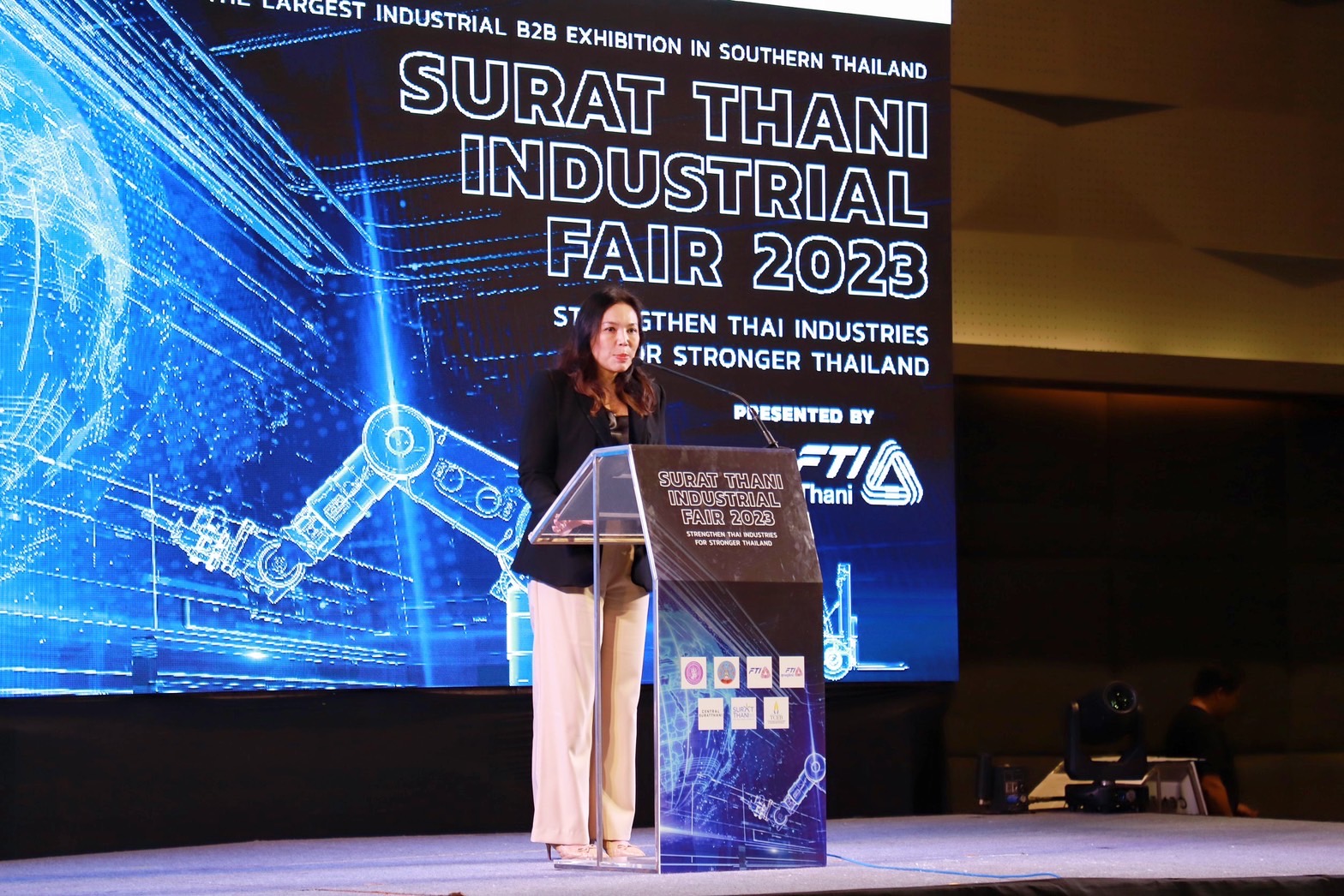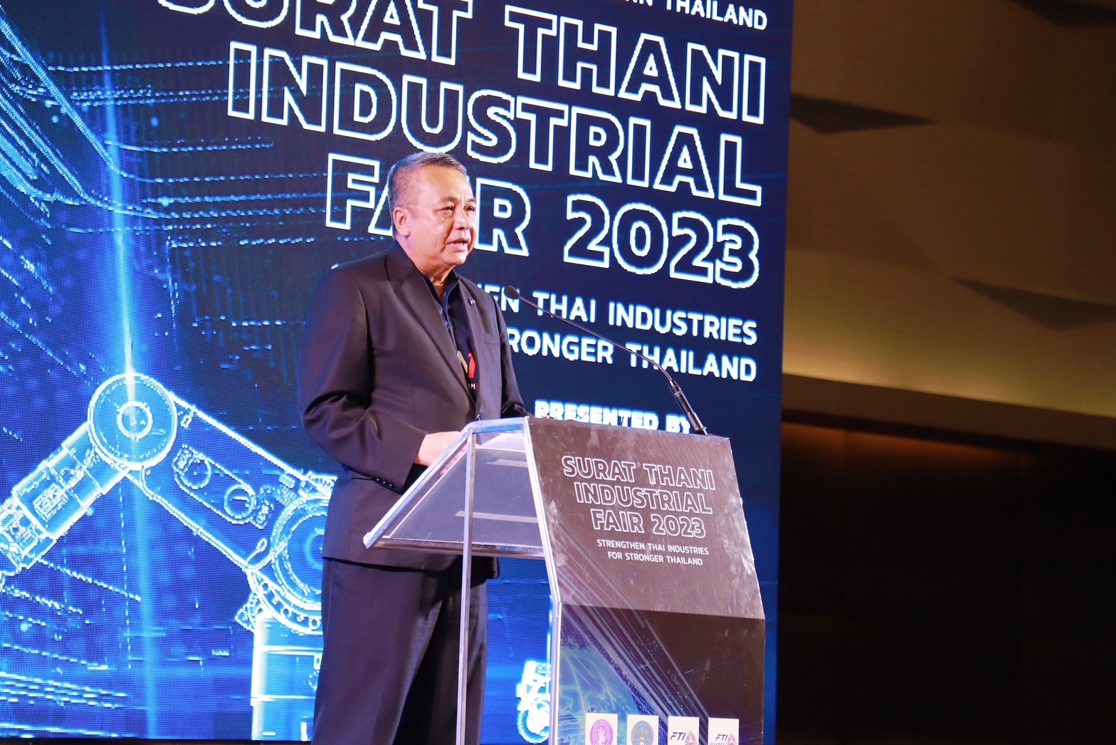 ด้านนายตริน พงษ์เภตรา ประธานสภาอุตสาหกรรมจังหวัดสุราษฎร์ธานี กล่าวว่า สถานการณ์ทางเศรษฐกิจของโลกที่ผันผวนภายใต้กระแสความเปลี่ยนแปลงอย่างต่อเนื่อง มีผลให้การพัฒนาเศรษฐกิจในด้านต่างๆ ของประเทศไทยหยุดชะงัก จนกระทั่งปัจจุบันสถานการณ์การณ์เริ่มคลี่คลาย คณะกรรมการสภาอุตสาหกรรมจังหวัดสุราษฎร์ธานี ในฐานะองค์กรหลักภาคเอกชนในการชับเคลื่อนเศรษฐกิจและอุตสาหกรรมของจังหวัด ได้กำหนดจัดงาน Suratthani Industrial Fair 2023 ขึ้นเพื่อขับเคลื่อนเศรษฐกิจของจังหวัดสุราษฎร์ธานีและพัฒนาอุตสาหกรรมทั้งระบบ รวมไปถึงการแสดงสินค้าอุดสาหกรรม การสร้างเครือข่ายระหว่างผู้ประกอบการ ตลอดจนการเพิ่มขีดความสามารถในการแข่งขันทางการค้า โดยมีการนำเทคโนโลยีต่างๆ ที่เกิดขึ้นในปัจจุบันมาใช้ในภาคอุตสาหกรรม การเกษตร ทั้งด้านการผลิต การแปรรูป และการขนส่ง รวมถึงกฎหมาย กฎระเบียบต่างๆ ทั้งด้านแรงงานและด้านสาธารณสุข ถือเป็นการผนึกกำลังครั้งสำคัญของจังหวัดสุราษฎร์ธานี
