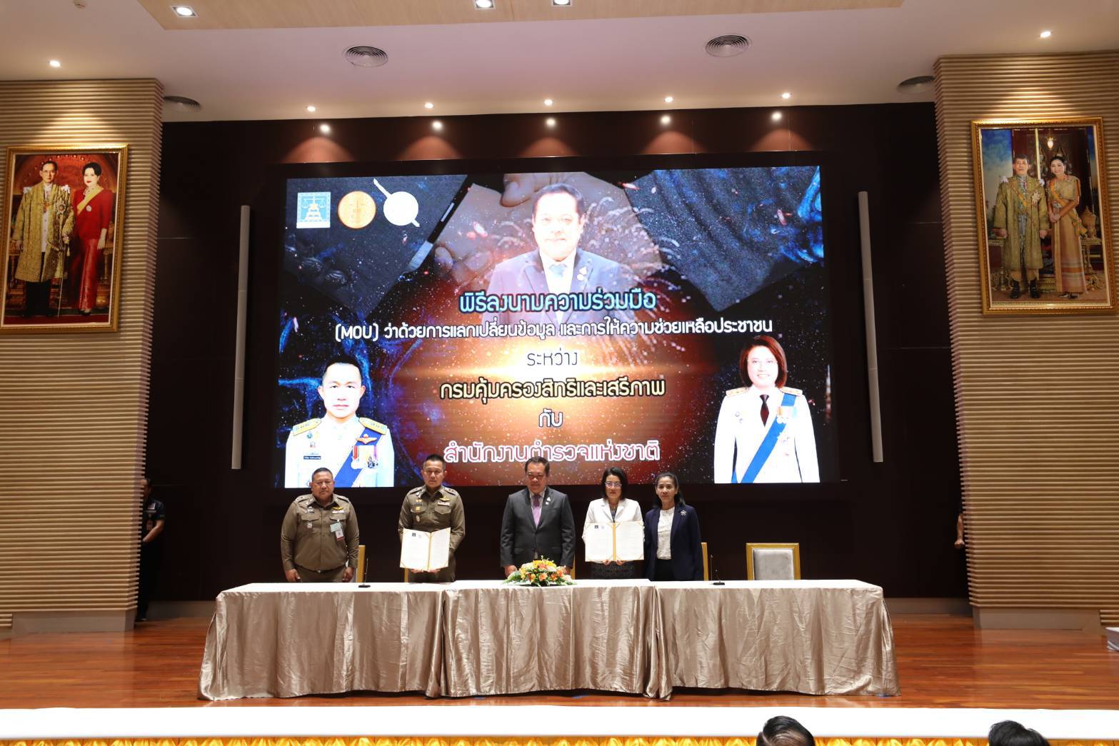 2. พิธีลงนามความร่วมมือ (MOU) ว่าด้วยการแลกเปลี่ยนข้อมูลและการให้ความช่วยเหลือประชาชน ระหว่าง กรมคุ้มครองสิทธิและเสรีภาพ กับ สำนักงานตำรวจแห่งชาติ โดยมีวัตถุประสงค์เพื่อเพิ่มประสิทธิภาพงานสืบสวน สอบสวน การคุ้มครองพยานในคดีอาญา และป้องกันปราบปรามอาชญากรรม ความสงบเรียบร้อย ความปลอดภัยของประชาชน และความมั่นคงของประเทศ ตลอดจนการช่วยเหลือแก่ผู้เสียหาย พยาน ผู้ขอรับบริการไกล่เกลี่ยในคดีอาญาให้มีประสิทธิภาพและเป็นไปตามเจตนารมณ์ ตามพระราชบัญญัติค่าตอบแทนผู้เสียหาย และค่าทดแทนและค่าใช้จ่ายแก่จำเลยในคดีอาญา พ.ศ. 2544 (และที่แก้ไขเพิ่มเติม (ฉบับที่ 2) พ.ศ. 2559) พระราชบัญญัติคุ้มครองพยานในคดีอาญา พ.ศ. 2546 และที่แก้ไขเพิ่มเติม (ฉบับที่ 2) พ.ศ. 2565 และพระราชบัญญัติการไกล่เกลี่ยข้อพิพาท พ.ศ. 2562 รวมถึงร่วมกันกำหนดนโยบายที่เกี่ยวข้อง การบังคับใช้กฎหมาย การสนับสนุนทางวิชาการ การศึกษาวิจัย พัฒนาองค์ความรู้ และพัฒนาศักยภาพบุคลากรและเจ้าหน้าที่ของหน่วยงานรัฐ