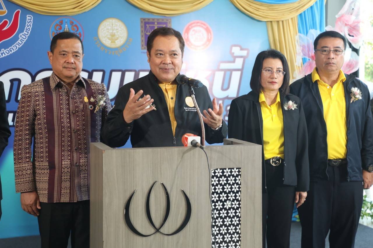 เมื่อวันที่ 6 เมษายน 2567 นี้ ที่ โรงแรมบรรจงบุรี จังหวัดสุราษฎร์ธานี พันตำรวจเอกทวี สอดส่อง รัฐมนตรีว่าการกระทรวงยุติธรรม เปิดโครงการมหกรรมแก้หนี้ สร้างวิถีแห่งความเป็นธรรม ครั้งที่ 3 จังหวัดสุราษฎร์ธานี ซึ่งกรมคุ้มครองสิทธิและเสรีภาพ กระทรวงยุติธรรม ร่วมกับ จังหวัดสุราษฎร์ธานี ยุติธรรมจังหวัดสุราษฎร์ธานี จัดขึ้น ที่โรงแรมบรรจงบุรี อำเภอเมือง จังหวัดสุราษฎร์ธานี ซึ่งตั้งแต่ในช่วงเช้า มีประชาชน ลูกหนี้ ทั้งในและนอกระบบโดยเฉพาะลูกหนี้กองทุนให้กู้ยืมเพื่อการศึกษามาลงทะเบียนเพื่อขอรับการช่วยเหลือแก้ไขปัญหาหนี้ นับพันคน โดยมี นางสาวเอมอร เสียงใหญ่ อธิบดีกรมคุ้มครองสิทธิและเสรีภาพ กล่าวรายงาน และมีนายเจษฎา จิตรัตน์ ผู้ว่าราชการจังหวัดสุราษฎร์ธานี นายมนตรา พรมสินธุ รองผู้ว่าราชการจังหวัดสุราษฎร์ธานี นายพงษ์ศักดิ์ จ่าแก้ว นายกองค์การบริหารส่วนจังหวัดสุราษฎร์ธานี นายเสกสรร สุขแสง อธิบดีกรมบังคับคดี พ.ต.ท.พงษ์ธร ธัญญสิริ ผู้อำนวยการสำนักงานกิจการยุติธรรม นายชัยณรงค์ กัจฉปานันท์ ผู้จัดการกองทุนเงินให้กู้ยืมเพื่อการศึกษา นายสิทธิ สุธีวงศ์ รองอธิบดีกรมราชทัณฑ์ และนายพลัฐ หิรัญสิริสมบัติ ผู้ตรวจราชการกรมบังคับคดี และผู้บริหารในสังกัดกระทรวงยุติธรรม ทั้งจากส่วนกลางและในพื้นที่ ส่วนราชการที่เกี่ยวข้อง ให้การต้อนรับ