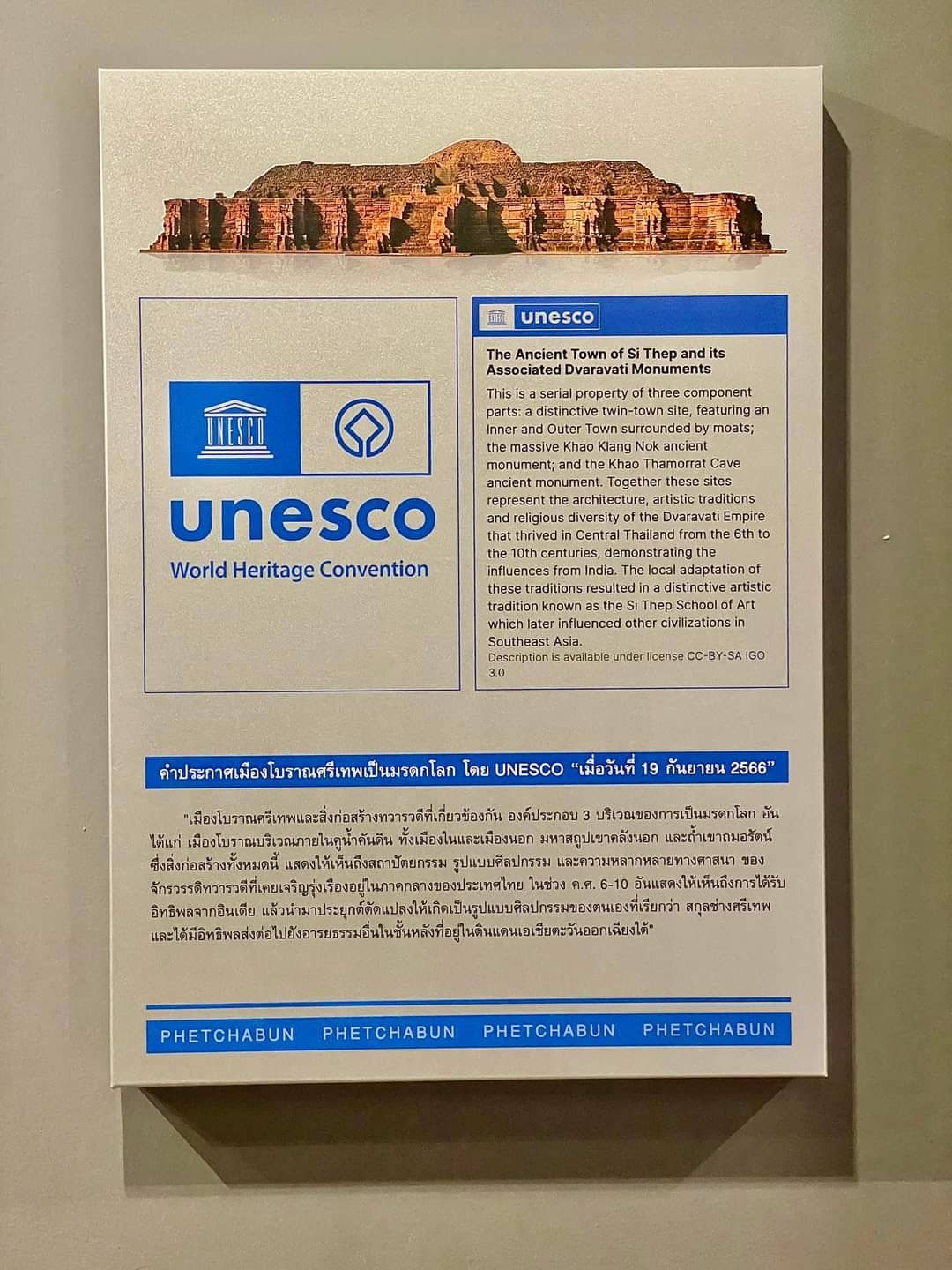 โดย เมื่อวันที่ 19 กันยายน 2566 ยูเนสโก ประกาศให้ เมืองโบราณศรีเทพ เป็นมรดกโลกทางวัฒนธรรม ซึ่งเป็นแหล่งที่ 4 ของไทย และเป็นมรกดโลกแห่งที่ 7 ของประเทศไทย มีชื่ออย่างเป็นทางการว่า The Ancient Town of Si Thep and its Associated Dvaravati Monuments