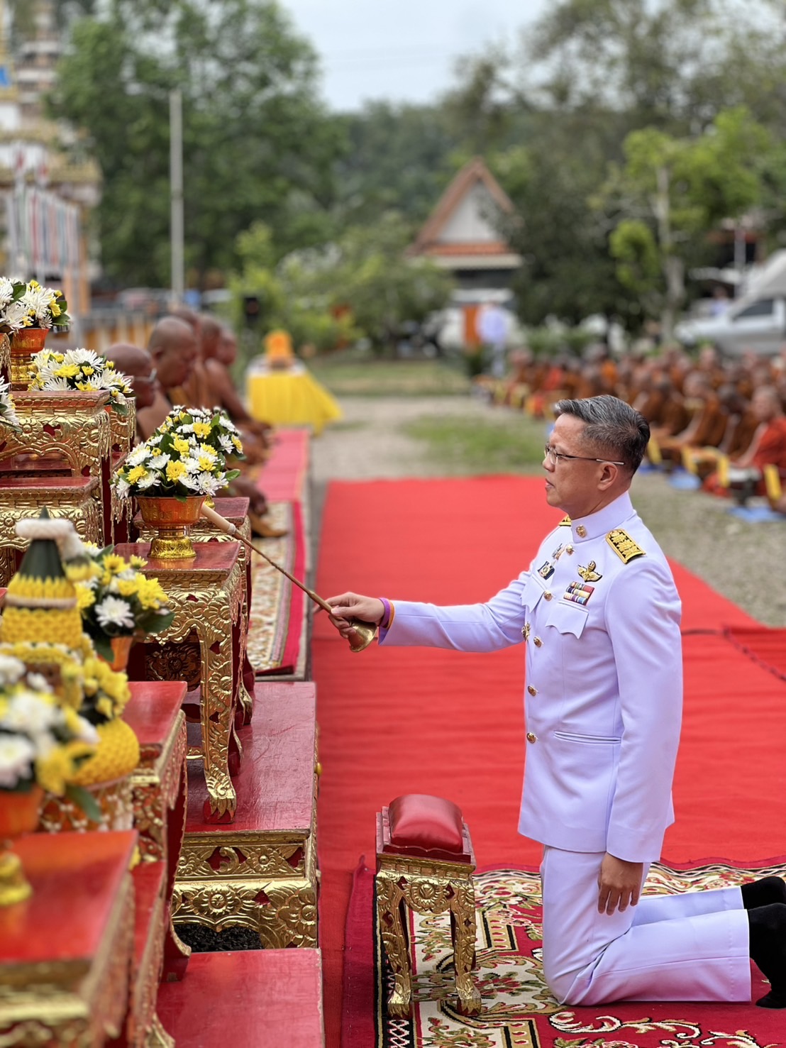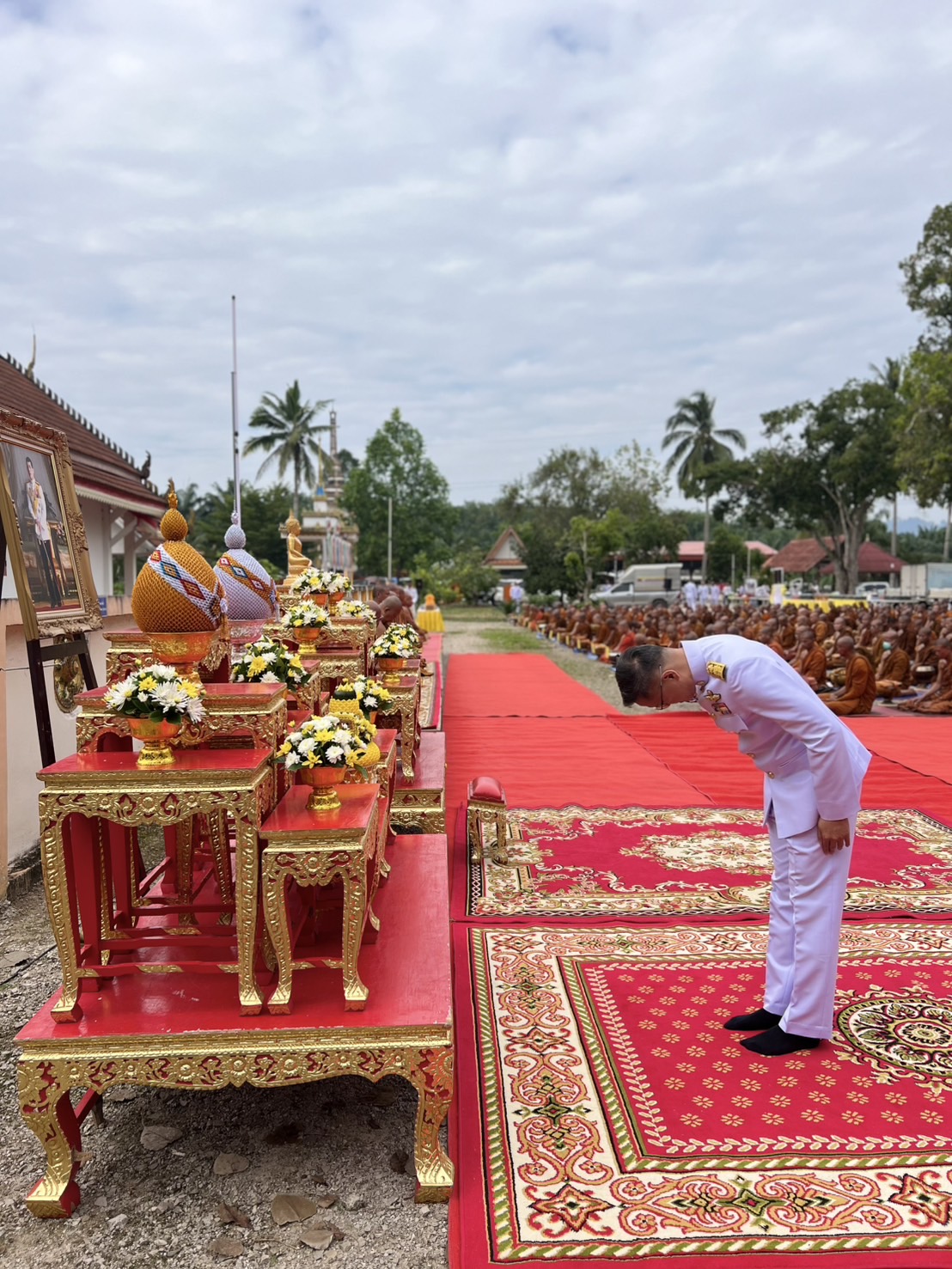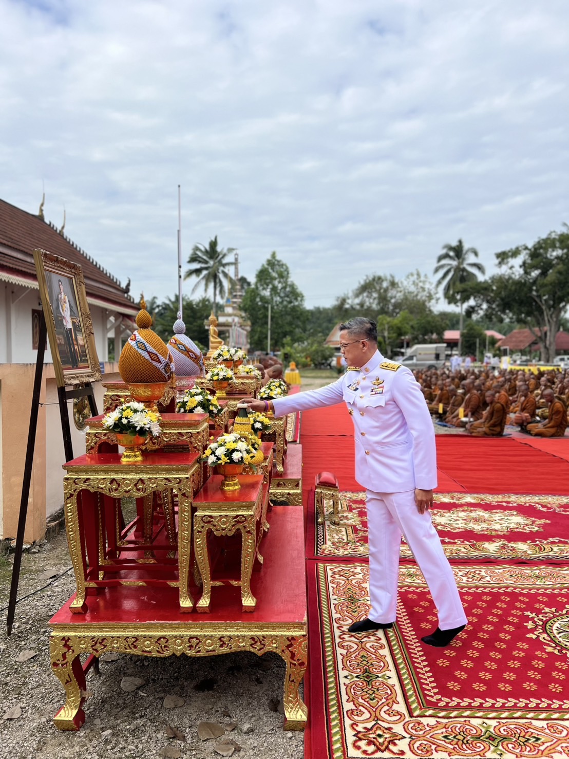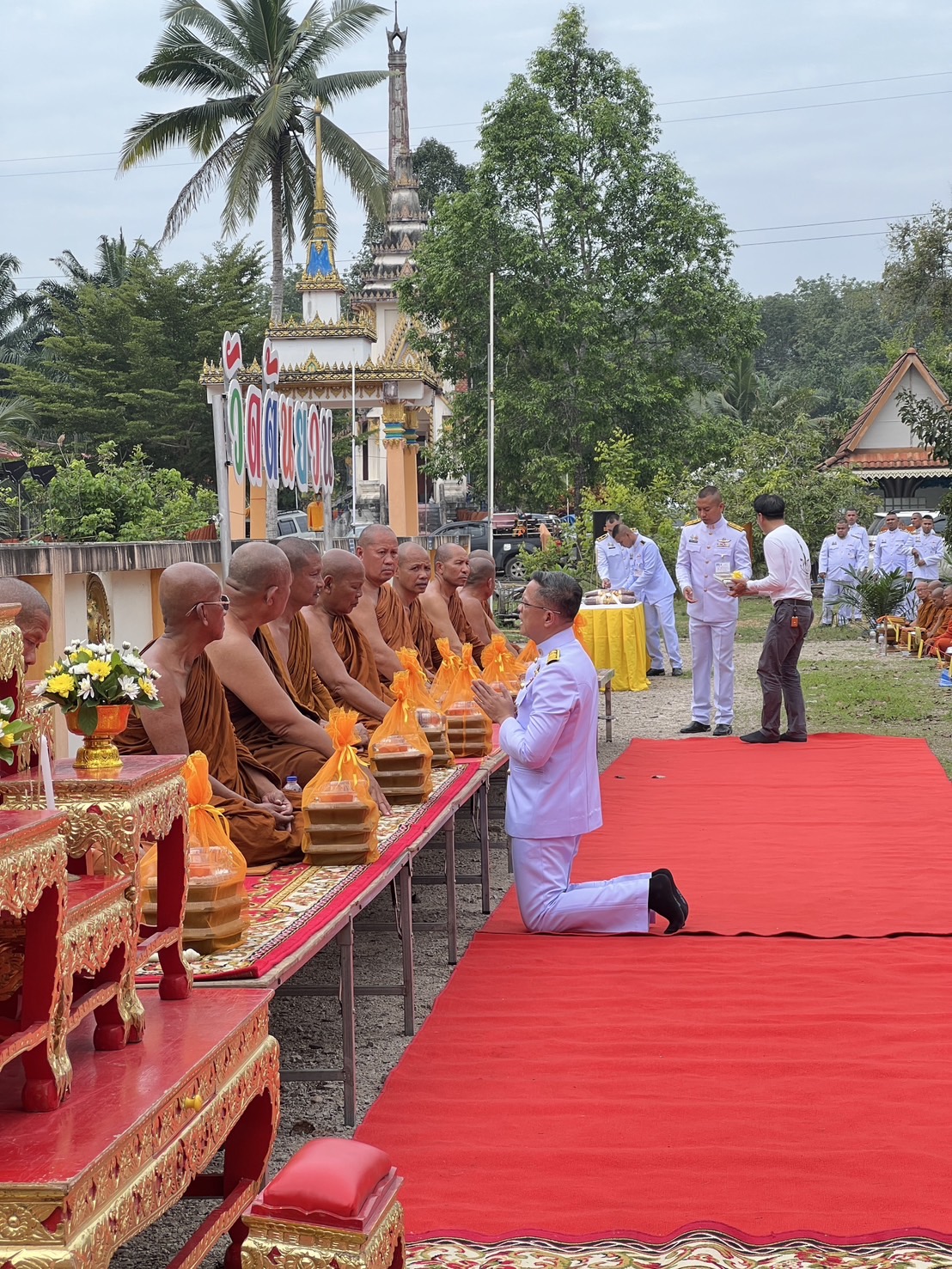 เมื่อเวลา 10.00 น.วันที่ 3 ธันวาคม 2567 นี้ พระบาทสมเด็จพระเจ้าอยู่หัว ทรงพระการุณาโปรดเกล้า ฯ พระราชทาน ให้ถวายภัตตาหารแด่พระภิกษุในโครงการจาริกธุดงด์ธรรมยาตราเผยแผ่ธรรมเฉลิมพระเกียรติ ณ วัดต้นยวน ตำบลคลองชะอุ่น อำเภอพนม จังหวัดสุราษฎร์ธานี โดยนายสุเชาว์ ทูโมสิก นายอำเภอพนม เชิญชวน หัวหน้าส่วนราบชการ หัวหน้าหน่วยงานรัฐวิสาหกิจ ผู้บริหารสถานศึกษา ผู้บริหารองค์กรปกครองส่วนท้องถิ่น กำนัน ผู้ใหญ่บ้าน ทุกหมู่บ้าน ทุกตำบล ประธานกุ่มองค์กร บริษัทห้างร้าน และประชาชนทุกหมู่เหล่า ร่วมพิธี โดยมีนายธีรุตม์ ศุภวิบูลย์ผล รองผู้ว่าราชการจังหวัดสุราษฎร์ธานี รักษาราชการแทนผู้ว่าราชการจังหวัดสุราษฎร์ธานี เป็นประธานรายงานข่าวแจ้งว่า โครงการจาริกธุดงด์ธรรมยาตราเผยแผ่ธรรมเฉลิมพระเกียรติ คณะสงฆ์จังหวัดศรีษะเกษ โดย พระครูภาวนาสีลวิสุทธิ์ รองเจ้าคณะอำเภอศิลาลาด เจ้าอาวาสวัดอุทยานธรรมดงยาง ตำบลคลีกลิ้ง อำเภอศิลาลาด จังหวัดศรีษะเกษ ได้กำหนดจัดโครงการจาริกธุดงค์ธรรมยาตราเผยแผ่ธรรมเฉลิมพระเกียรติ เพื่อนำคณะสงฆ์-สามเณร-อุบาสกออกจาริกธุดงค์ฝึกฝนขัดเกลาตนเอง และถวายเป็นพระราชกุศลแด่ พระบาทสมเด็จพระเจ้าอยู่หัว เนื่องในโอกาสพระราชพิธีมหามงคลเฉลิมพระชนมพรรษา 6 รอบ 28กรกฎาคม 2567 โดยกำหนดเริ่มออกเดินจาริกธุดงค์ ในวันที่ 1ธันวาคม 2567 จากวัดมหาธาตุวชิรมงคล ตำบลนาเหนือ อำเภออ่าวลึก จังหวัดกระบี่ผ่านจังหวัดพังงา จังหวัดระนอง จังหวัดสุราษฎร์ธานี จังหวัดชุมพร จังหวัดประจวบคีรีขันธ์ จังหวัดเพชรบุรี จังหวัดราชบุรี และสิ้นสุดการจาริกธุดงค์ที่วัดพระปฐมเจดีย์ ราชวรวิหาร ตำบลพระปฐมเจดีย์ อำเภอเมือง