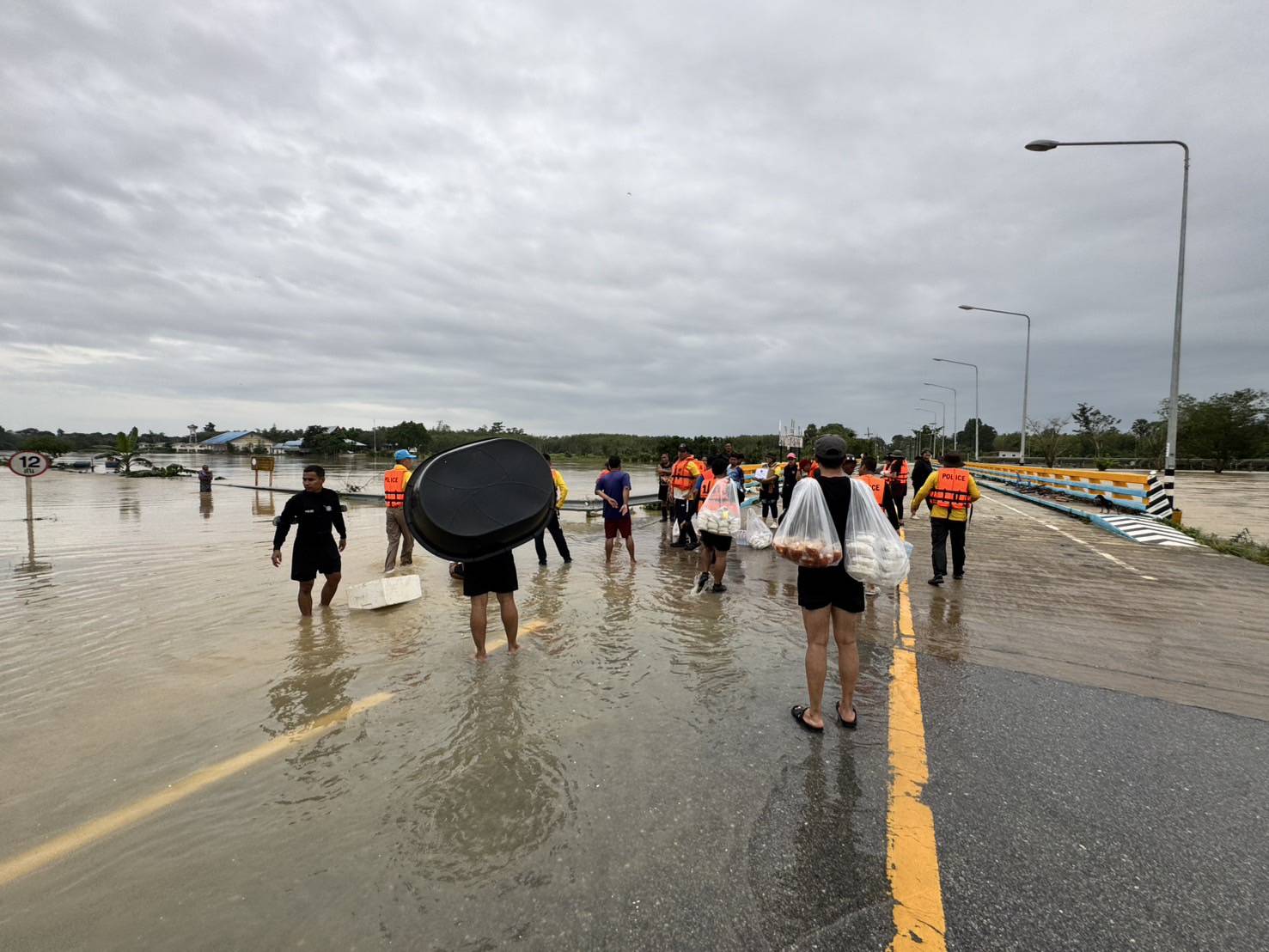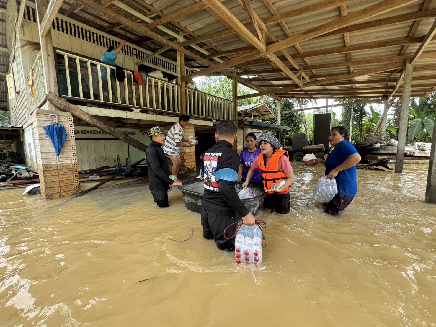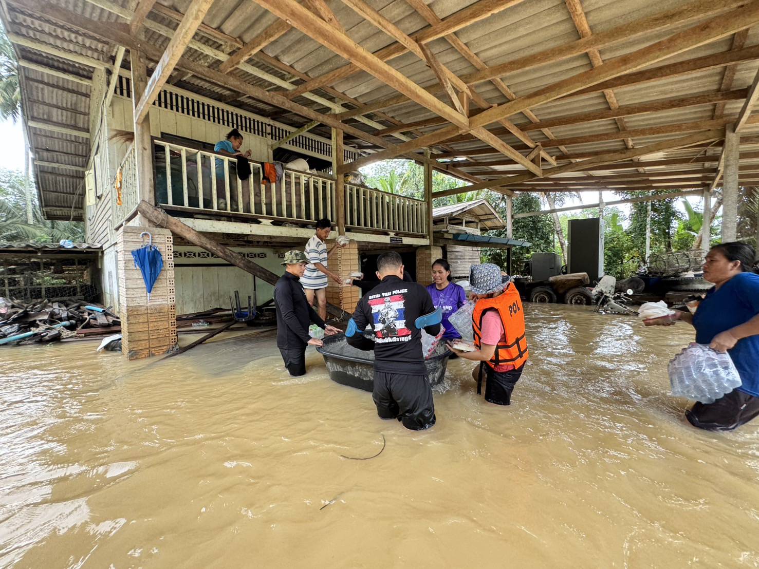 เมื่อวันที่ 3 ธันวาคม 2567 นี้ ร้อยตำรวจเอกปิยะ รักสกุล รองเลขา ศูนย์บริหารจังหวัดชายแดนภาคใต้ (ศอ.บต) เปิดเผยว่าหลังสถานการณ์น้ำท่วมสูงในทุกพื้นที่ของจังหวัดชายแดนภาคใต้ บ้านน้ำดำ หมู่3 ต.ปุโละปุโย อ.หนองจิก จ.ปัตตานี เป็นอีกพื้นที่หนึ่งที่ได้รับความเสียหายอย่างหนัก น้ำท่วมขังระดับสูงถึงหลังคาเรือนทั้งหมู่บ้าน ทำให้ชาวบ้านกว่า300 ชีวิตติดน้ำไม่สามารถออกมาได้ ไม่ได้รับประทานอาหารกว่า2วัน เบื้องต้นชาวบ้านได้โทรศัพท์ประสานมายัง สายด่วน 1880 ศอ.บต.แจ้งขอรับอาหารประทังชีวิต หลังจากได้รับการประสาน ศอ.บต.ในฐานะหน่วยงานหลักในการประสานงาน ดำเนินการประสานไปยังเจ้าหน้าที่ปภ.จังหวัดยะลาและเจ้าหน้าที่ตำรวจจากศูนย์ปฏิบัติการตำรวจจังหวัดชายแดนภาคใต้นำกำลังเจ้าหน้าที่และเรือยนต์เข้าไปมอบอาหารจากโรงครัวพระราชทานที่ศอ.บต.จัดตั้งขึ้นตามที่ศอ.บต. ได้รับพระมหากรุณาธิคุณจาก พระเจ้าวรวงศ์เธอพระองค์เจ้าโสมสวลี กรมหมื่นสุทธนารีนาถ องค์นายกกิตติมศักดิ์ตลอดชีพ และสมเด็จพระเจ้าลูกเธอ เจ้าฟ้าพัชรกิติยาภานเรนทิราเทพยวดี กรมหลวงราชสาริณีสิริพัชร มหาวัชรราชธิดา ประธานกรรมการดำเนินงานมูลนิธิอาสาเพื่อนพึ่ง (ภาฯ) ยามยาก สภากาชาดไทย มาจัดตั้งโรงครัวพระราชทาน 2 จุดด้วยกัน จุดแรกคือสถานสงเคราะห์เด็กชาย จังหวัดยะลา ตั้งแต่วันที่ 30 พฤศจิกายน – 4 ธันวาคม รวม 5 วัน วันละ 2,000 กล่อง ได้แก่ มื้อเที่ยง 1,000 กล่อง รวมมื้อเย็น อีก 1,000 กล่อง มีจิตอาสา เจ้าหน้าที่จากสถานสงเคราะห์เด็กชาย มาร่วมประกอบอาหาร จุดที่ 2 ที่โรงครัววังพญา มีเครือข่ายภาคประชาสังคม มาร่วมประกอบอาหารตั้งแต่วันที่ 1 - 7 ธันวาคม วันละ 2,000 กล่อง โดยจะมีจิตอาสา ผู้แทนของหน่วยงานจังหวัด ผู้แทนชุมชนมารับ พร้อมน้ำดื่ม เพื่อส่งต่อ ให้กับประชาชน ที่ได้รับผลกระทบ ผู้สูงอายุ ผู้ป่วยติดเตียง กลุ่มเปราะบาง ซึ่งจะเน้นอาหารที่มีคุณภาพตามหลักโภชนาการ ต่อผู้บริโภค โดยชาวบ้านบ้านน้ำดำกล่าวขอบคุณศอ.บต.ทั้งน้ำตา