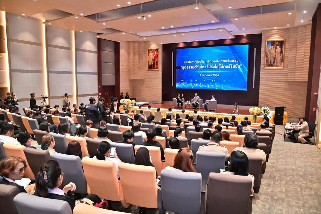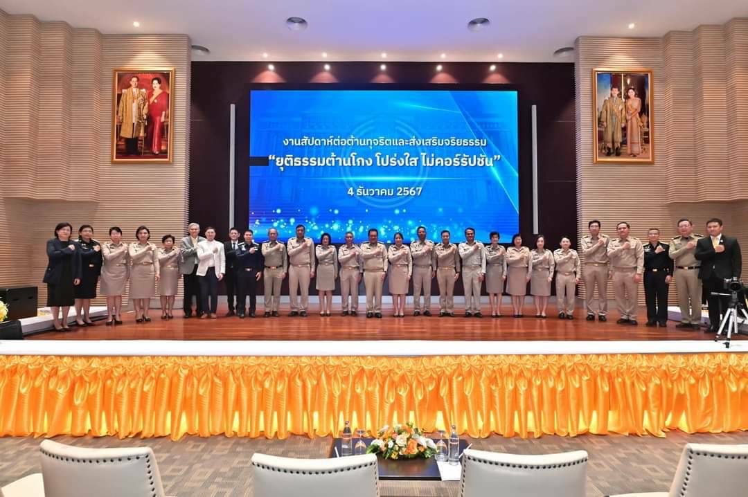 เมื่อ เวลา 09.30 น. วันที่ 4 ธันวาคม 2567 นี้ พันตำรวจเอก ทวี สอดส่อง รัฐมนตรีว่าการกระทรวงยุติธรรม เป็นประธานเปิดโครงการสัปดาห์ต่อต้านทุจริตและส่งเสริมจริยธรรม “ยุติธรรมต้านโกง โปร่งใส ไม่คอร์รัปชัน” โดยมี นางพงษ์สวาท นีละโยธิน ปลัดกระทรวงยุติธรรม เป็นผู้กล่าวรายงาน พร้อมด้วย นายกูเฮง ยาวอหะซัน เลขานุการรัฐมนตรีว่าการกระทรวงยุติธรรม คณะผู้บริหารระดับสูงกระทรวงยุติธรรม ข้าราชการ และเจ้าหน้าที่ที่เกี่ยวข้อง เข้าร่วม ณ ห้องประชุมกระทรวงยุติธรรม 10-09 (ห้องออดิทอเรียม) ชั้น 10 กระทรวงยุติธรรม และผ่านระบบออนไลน์ (Facebook live)