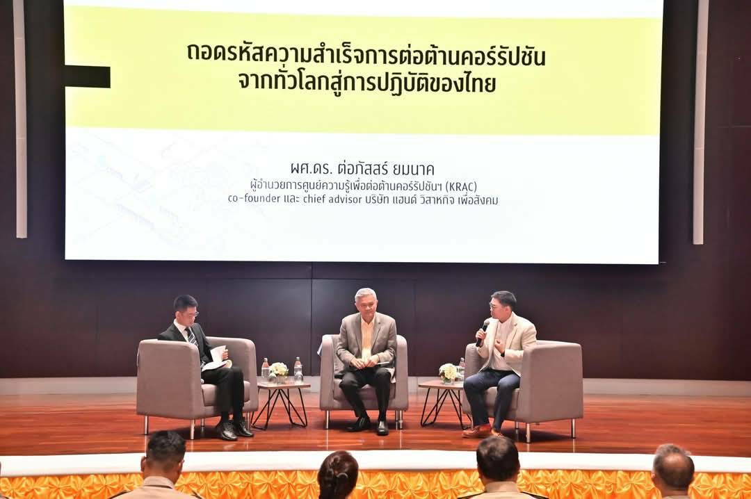 โอกาสนี้ ได้มีการจัดการอภิปรายในหัวข้อ “ถอดรหัสความสำเร็จการต่อต้านคอร์รัปชันของสิงคโปร์และเกาหลีใต้สู่การปฏิบัติของไทย” โดยได้รับเกียรติจาก ดร.มานะ นิมิตรมงคล เลขาธิการองค์กรต่อต้านคอร์รัปชั่น (ประเทศไทย) ผู้ช่วยศาสตราจารย์ ดร.ต่อภัสสร์ ยมนาค ผู้อำนวยการศูนย์ความรู้เพื่อความร่วมมือในการต่อต้านคอร์รัปชั่นและส่งเสริมธรรมาภิบาลในระดับภูมิภาค คุณก่อเขต จันทเลิศลักษณ์ ผู้อำนวยการสำนักข่าวสถานีโทรทัศน์ไทยพีบีเอส เป็นวิทยากรบรรยายให้ความรู้