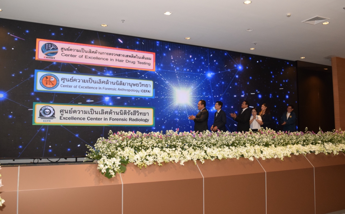 โอกาสนี้ รัฐมนตรีว่าการกระทรวงยุติธรรม ได้เปิดศูนย์ความเป็นเลิศด้านนิติมานุษยวิทยา (Center of Excellence in Forensic Anthropology : CEFA) ศูนย์ความเป็นเลิศด้านการตรวจสารเสพติดในเส้นผม (Center of Excellence in Hair Drug Testing : CEHDT) และศูนย์ความเป็นเลิศด้านนิติรังสีวิทยา (Excellent Center in Forensic Radiology : ECFR) เพื่อขับเคลื่อนความเชี่ยวชาญของนักวิจัยและผู้เชี่ยวชาญด้านนิติมานุษยวิทยา ด้านการตรวจพิสูจน์สารเสพติดในเส้นผม ด้านการผ่าชันสูตร ด้านการตรวจพิสูจน์สารพันธุกรรม และด้านอื่นๆ เพื่อสร้างนวัตกรรมด้านการตรวจพิสูจน์และการบริการตามมาตรฐานสากล