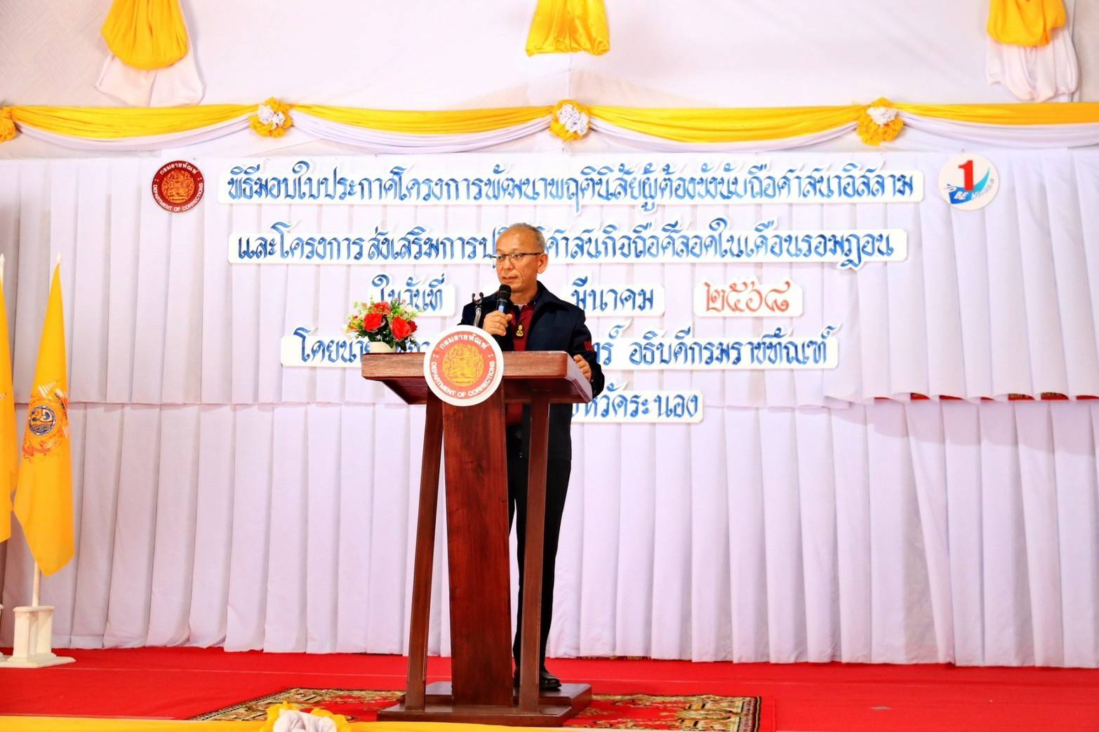 เพื่อเตรียมความพร้อมให้กับผู้ก้าวพลาดก่อนปล่อยตัวกลับสู่สังคมสามารถนำไปต่อยอด และดำรงชีวิตภายหลังพ้นโทษได้อย่างมีคุณภาพ ไม่กลับมากระทำผิดซ้ำ การขับเคลื่อนนโยบายด้านการพัฒนาจิตใจผู้ต้องขัง ตามหลักศาสนาจะต้องได้รับการพัฒนาควบคู่กับการพัฒนาในมิติอื่นๆ เพื่อให้ผู้ต้องขังได้รับการแก้ไขฟื้นฟูพัฒนาจิตใจ เสริมสร้างภูมิคุ้มกันทางด้านจิตใจสร้างวัฒนธรรมอันดีงาม และเกิดการเรียนรู้รูปแบบกิจกรรมทางศาสนาที่ถูกต้องและสามารถนำไปปรับใช้ในการดำเนินชีวิต การอยู่ร่วมกับสังคมได้อย่างปกติสุข ขอขอบคุณเรือนจำจังหวัดระนอง ที่ได้ขับเคลื่อนงานราชทัณฑ์ ในทุกมิติ โดยเฉพาะมิติด้านการแก้ไข พัฒนาพฤตินิสัยผู้ต้องขัง และขอบคุณภาคีเครือข่ายทุกภาคส่วน ที่เล็งเห็นความสำคัญในการพัฒนาแก้ไขผู้ต้องขังของกรมราชทัณฑ์ อันเป็นอีกพลังขับเคลื่อนหนึ่งที่จะสร้างสรรค์สังคมให้อบอุ่น น่าอยู่ และปลอดภัยมากยิ่งขึ้น ดังพันธสัญญาที่ว่า “ราชทัณฑ์แก้ไข...คนไทยให้โอกาส”นาย อธิบดีกรมราชทัณฑ์ กล่าว