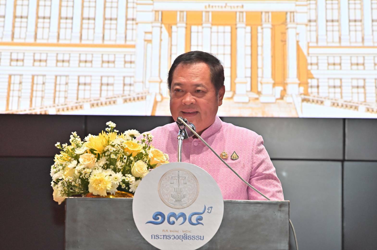รัฐมนตรีว่าการกระทรวงยุติธรรม กล่าวว่า ผมรู้สึกเป็นเกียรติและมีความเป็นยินดีเป็นอย่างยิ่งที่ได้มาเป็นประธานในพิธีมอบรางวัลงานสถาปนากระทรวงยุติธรรมครบรอบ 134 ปี ซึ่งจัดขึ้นภายใต้ หัวข้อ “134 กระทรวงยุติธรรม เชื่อมั่น เข้าถึง ที่พึ่งประชาชน” กระทรวงยุติธรรมได้รับการสถาปนาโดยล้นเกล้ารัชกาลที่ 5 ซึ่งต้องเรียนว่าวันนี้พระราชจริยวัตรของพระองค์ท่านถ้ากระทรวงยุติธรรมนำไปเป็นปรัชญา ประการที่ 1 คือ พระองค์ท่านได้ทรงเลิกทาสโดยถือว่ามนุษย์ทุกคนต้องมีศักดิ์ศรี มีความเท่าเทียม การเลิกทาสจึงถือว่าเป็นเรื่องที่ยิ่งใหญ่มาก กระทรวงยุติธรรมจึงจำเป็นต้องนำพระราชจริยวัตรนี้ไปปฏิบัติเพื่อให้ประชาชนคนไทยหรือในโลกมีศักดิ์ศรีความเป็นมนุษย์เท่ากัน มีความเสมอภาคเท่าเทียมกัน ประการที่ 2 คือ พระองค์ทรงปฏิรูป โดยเราจะเห็นว่าเกือบทุกแห่งของหน่วยราชการหรือหน่วยงานต่างๆ ถ้าย้อนไปเกิดขึ้นในสมัยล้นเกล้ารัชกาลที่ 5 โดยทำบนพื้นฐานบริบทเดิมให้ดีขึ้น คือ เราคงไม่หยุดนิ่งคงจะต้องมาปฏิรูป ประการที่ 3 คือ ท่านเสด็จประพาสไปทั่วทุกแห่ง แสดงให้เห็นถึงการเข้าไปหาความรู้ คือ เราต้องพัฒนาความรู้ เราต้องรู้จริง ไม่ใช่รู้โดยการอ่านหนังสืออย่างเดียว ประการที่ 4 ที่สำคัญมาก คือ พระองค์ท่านทรงเป็นที่รักของประชาชน การที่จะทำให้ประชาชนรัก คือ การเข้าถึงเพื่อสร้างความเชื่อมั่น และเป็นที่พึ่งของประชาชน ดังนั้น หัวข้อ “134 ปี กระทรวงยุติธรรม เชื่อมั่น เข้าถึง ที่พึ่งประชาชน” ซึ่งเป็นหัวข้อที่เหมาะสมกับสถานการณ์ในปัจจุบัน ผมจึงเห็นว่าเราควรนำพระราชจริยวัตรมาเป็นแนวทาง โดยในยุคสมัยครบรอบ 134 ปี บทบาทของกระทรวงยุติธรรม อาจจะกล่าวได้ว่า กระทรวงยุติธรรมเป็นกระทรวงที่ธำรงไว้ซึ่งหลักนิติธรรม เป็นคำกล่าวที่สอดคล้องกับรัฐธรรมนูญ และจะกำหนดให้ทุกหน่วยงานของกระทรวงยุติธรรมมีหน้าที่ต้องปฏิบัติตามกฎหมายและหลักนิติธรรม เพื่อรักษาความยุติธรรมและประโยชน์ของประชาชนโดยส่วนรวม
