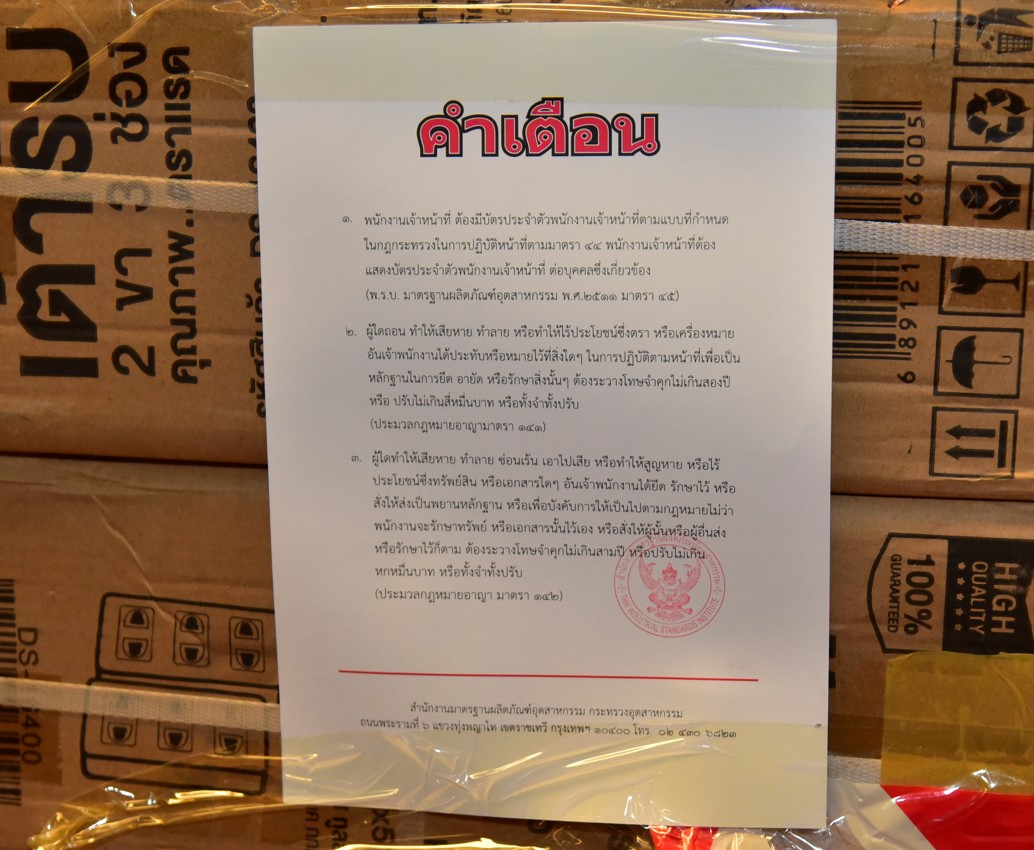 ทูลส์ จำกัด พบผลิตภัณฑ์เต้ารับ เต้าเสียบ รางปลั๊กไฟ สวิสซ์ไฟที่ไม่ปรากฏเครื่องหมายมาตรฐานผลิตภัณฑ์อุตสาหกรรม จำนวน 602,340 ชิ้น และผลิตภัณฑ์ฝักบัวและก๊อกน้ำที่แสดงเลขมาตรฐานผลิตภัณฑ์อุตสาหกรรมไม่ถูกต้อง จำนวน 2,460 ชิ้น ซึ่งผลิตภัณฑ์ดังกล่าวบริษัทฯ นำเข้ามาจำหน่ายโดยไม่ได้รับอนุญาตเจ้าหน้าที่สำนักงานมาตรฐานผลิตภัณฑ์อุตสาหกรรมยึด อายัดผลิตภัณฑ์ดังกล่าวไว้ ณ คลังเก็บสินค้าของบริษัทฯ พร้อมลงบันทึกประจำวันกับพนักงานสอบสวนสถานีตำรวจนครบาลเทียนทะเล เพื่อใช้เป็นหลักฐานการตรวจควบคุมและเป็นหลักฐานในการดำเนินการ