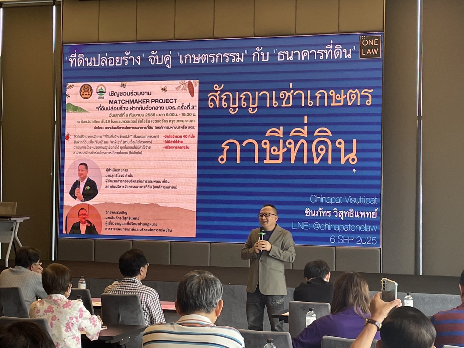 นายกุลพัชร เปิดเผยว่า วันนี้ตนมอบหมายให้ นายสุทธิโรจน์ คำมั่น ผู้อำนวยการกองบริหารจัดการและพัฒนาที่ดิน ดำเนินการโครงการตัวกลางที่ดิน โดยจัดกิจกรรม MATCHMAKER PROJECT "ที่ดินปล่อยร้าง ฝากกับตัวกลาง บจธ. ครั้งที่ 3“ ณ ห้อง Jubilee โรงแรมควอเตอร์ รัชโยธิน เขตจตุจักร กรุงเทพฯ