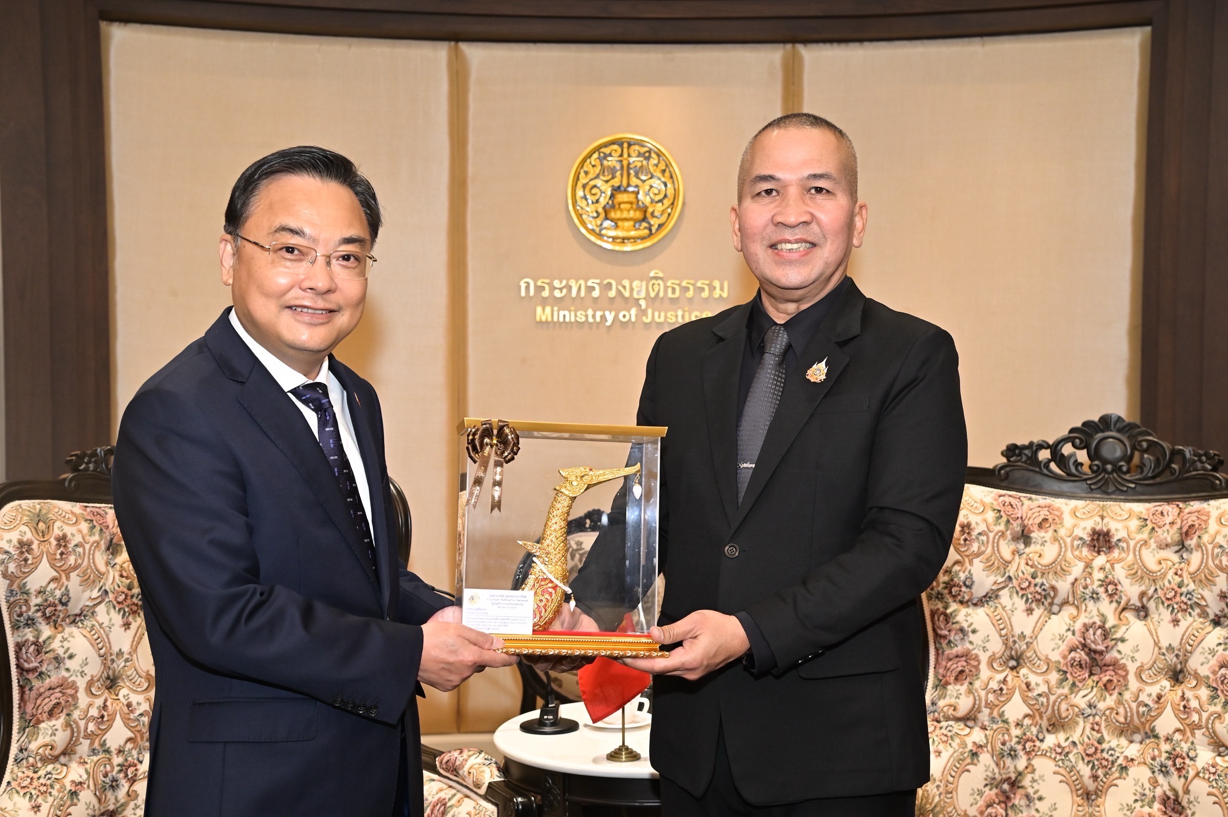 วันจันทร์ที่ 3 พฤศจิกายน 2568 เวลา 10.00 น. พลตำรวจโท รุทธพล เนาวรัตน์ รัฐมนตรีว่าการกระทรวงยุติธรรม พร้อมด้วยพันตำรวจโท ประวุธ วงศ์สีนิล อธิบดีกรมราชทัณฑ์ นายมานะ ศิริพิทยาวัฒน์ รองเลขาธิการ ป.ป.ส. ร้อยตำรวจเอก วิษณุ ฉิมตระกูล รองอธิบดีกรมสอบสวนคดีพิเศษ และพลตำรวจโท สุรพล เปรมบุตร ผู้บัญชาการกองบัญชาการตำรวจสืบสวนสอบสวนอาชญากรรมทางเทคโนโลยี ได้ให้การต้อนรับนายจาง เจี้ยนเหว่ย์ (H.E. Mr. Zhang Jianwei) เอกอัครราชทูตวิสามัญผู้มีอำนาจเต็มแห่งสาธารณรัฐประชาชนจีนประจำประเทศไทย และคณะ ในโอกาสเข้ารับตำแหน่งอัครราชทูตวิสามัญผู้มีอำนาจเต็มแห่งสาธารณรัฐประชาชนจีนประจำประเทศไทย ณ ห้องรับรองประจำกระทรวงยุติธรรม 3-01 ชั้น 3 อาคารกระทรวงยุติธรรม