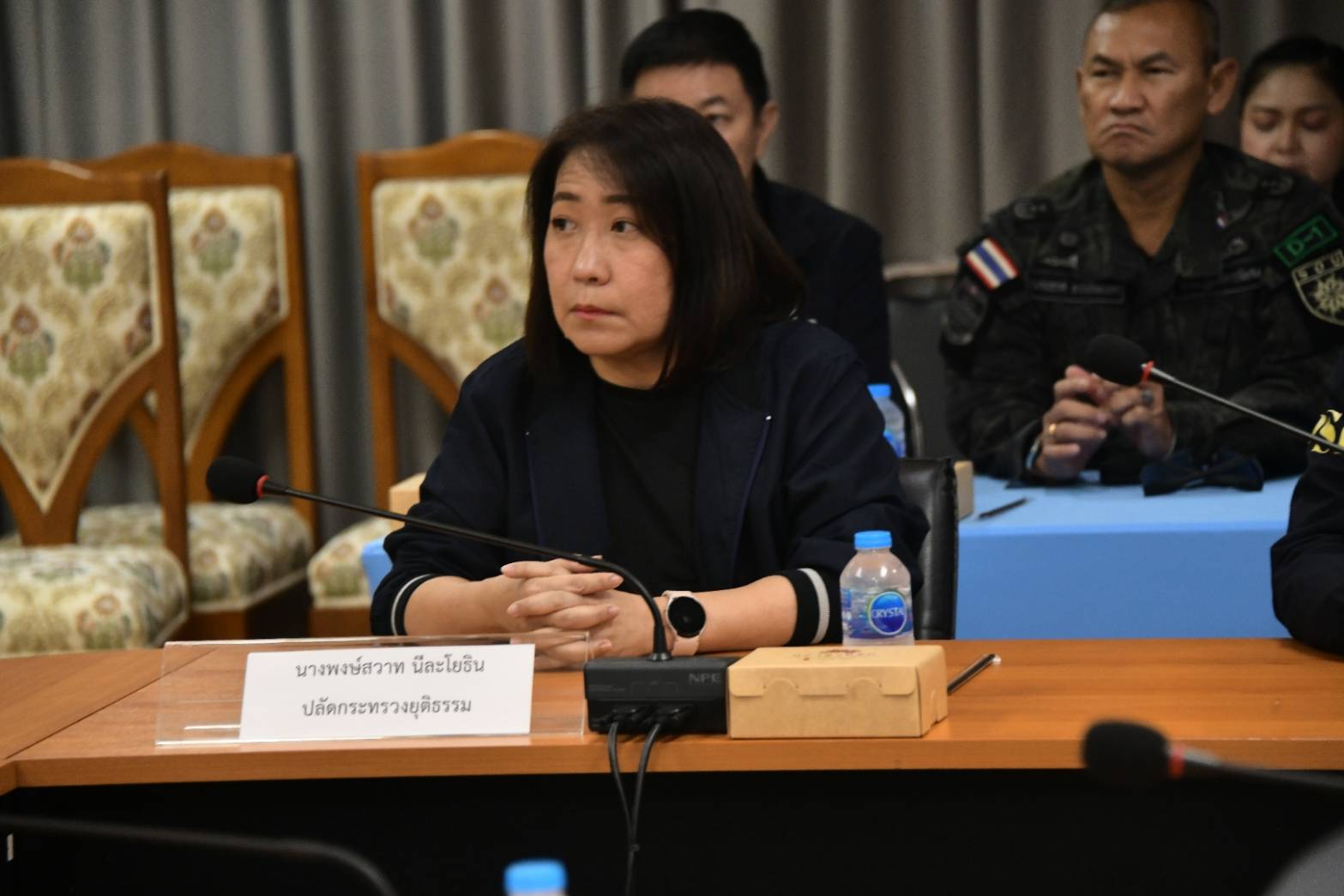 โอกาสนี้ พลตำรวจโท รุทธพล เนาวรัตน์ รัฐมนตรีว่าการกระทรวงยุติธรรม กล่าวว่า ในวันนี้ตนและปลัดกระทรวงยุติธรรม และผู้บริหารกระทรวงยุติธรรมได้ลงพื้นที่จริง โดยรายละเอียดเบื้องต้นจะให้กรมสอบสวนคดีพิเศษรับเป็นคดีพิเศษ ซึ่งวันนี้ได้ให้เจ้าหน้าที่กรมสอบสวนคดีพิเศษร่วมเข้าไปตรวจสอบด้วย ซึ่งในวันตรวจค้นเรือนจำพิเศษกรุงเทพมหานคร เมื่อวันอาทิตย์ที่ 16 พฤศจิกายน 2568 นั้น พันตำรวจโท ประวุธ วงศ์สีนิล อธิบดีกรมราชทัณฑ์ ได้ตั้งศูนย์บัญชาการอยู่ที่เรือนจำกลางคลองเปรม โดยมอบหมายให้นายยุทธนา นาคเรืองศรี รองอธิบดีกรมราชทัณฑ์ เป็นหัวหน้าคณะปฎิบัติงาน โดยการสอบปากคำบุคคลที่เกี่ยวข้องได้ดำเนินการตั้งแต่วันที่ตรวจค้นแล้ว