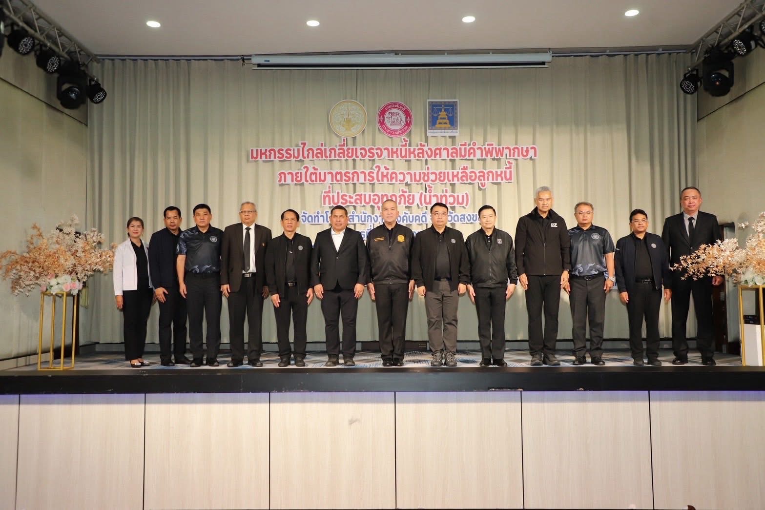 ในวันพุธที่ 24 ธันวาคม 2568 เวลา 10.00 น. พลตำรวจโท รุทธพล เนาวรัตน์ รัฐมนตรีว่าการกระทรวงยุติธรรม เป็นประธานในพิธีเปิดงานมหกรรมไกล่เกลี่ยเจรจาหนี้หลังศาลมีคำพิพากษา ภายใต้มาตรการช่วยเหลือลูกหนี้ที่ประสบอุทกภัย (น้ำท่วม) ในพื้นที่จังหวัดสงขลา โดยมี นายสังคม เกิดก่อ รองผู้ว่าราชการจังหวัดสงขลา กล่าวต้อนรับ และนายเสกสรร สุขแสง อธิบดีกรมบังคับคดี กล่าวรายงาน พร้อมด้วย นายไตรยฤทธิ์ เตมหิวงศ์ อธิบดีกรมคุ้มครองสิทธิและเสรีภาพ ร้อยตำรวจเอก ปิยะ รักสกุล อธิบดีกรมคุมประพฤติ คณะผู้บริหารกระทรวงยุติธรรม หัวหน้าส่วนราชการสังกัดกระทรวงยุติธรรมในพื้นที่จังหวัดสงขลา และประชาชน เข้าร่วม ณ โรงแรม เดอะเบด เวเคชั่น ราชมังคลา ตำบลบ่อยาง อำเภอเมืองสงขลา จังหวัดสงขลา