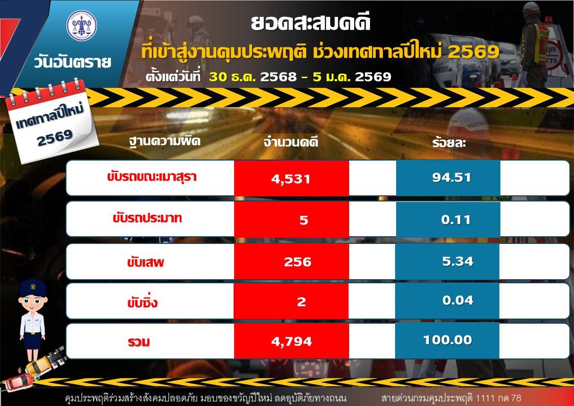 5 มกราคม 2569 รวมทั้งสิ้น 4,794 คดี แบ่งเป็น