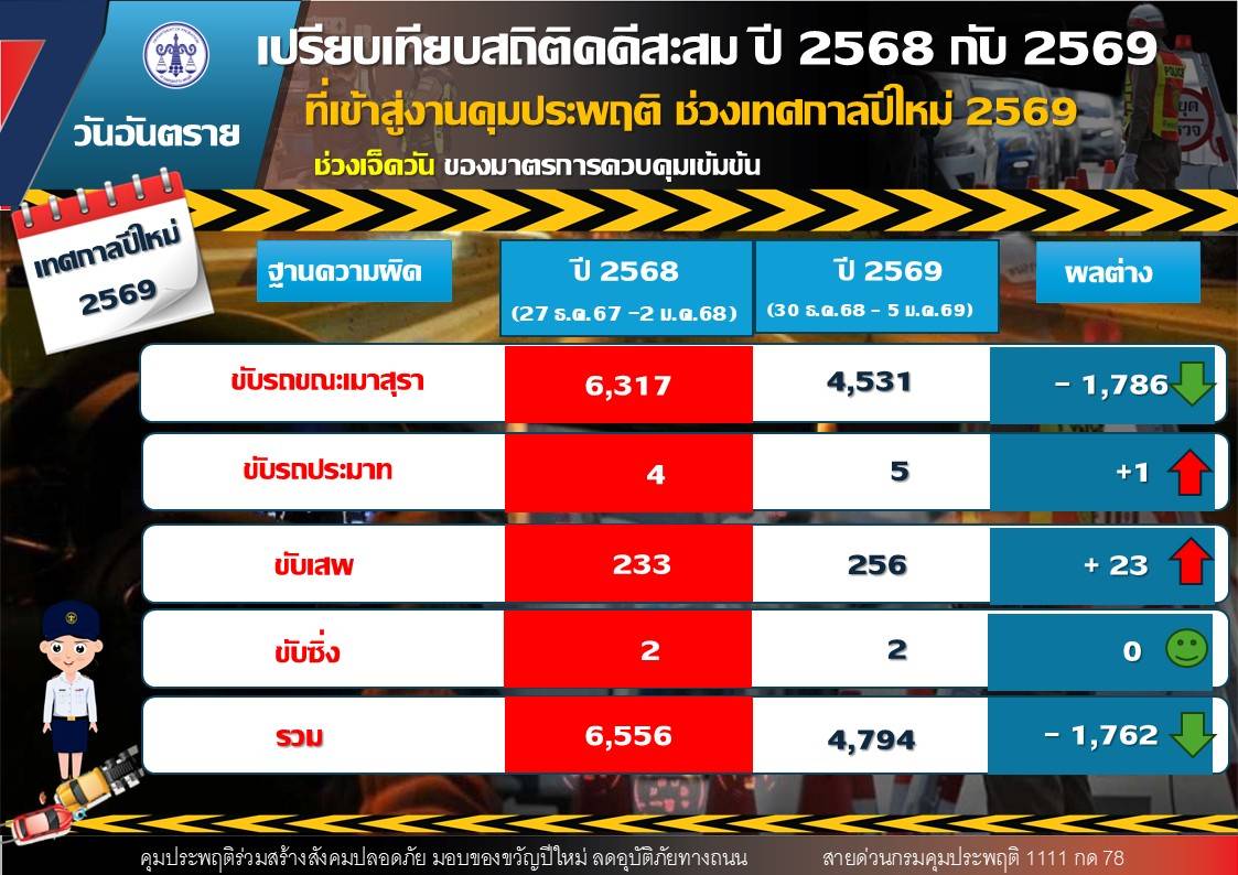ขณะที่ยอดคดีสะสมตลอด 7 วัน ตั้งแต่วันที่ 30 ธันวาคม 2568 -