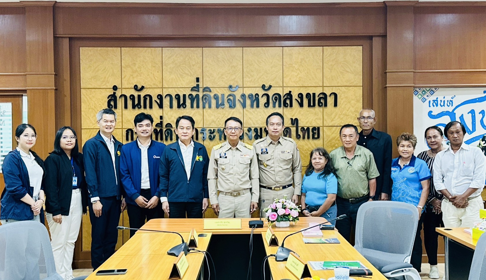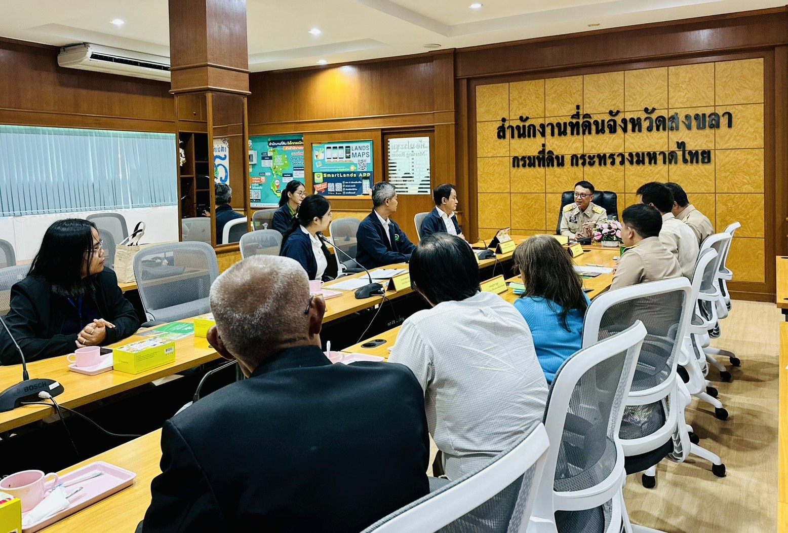 วันที่ 27 เมษายน 2569 นายกุลพัชร ภูมิใจอวด ผู้อำนวยการสถาบันบริหารจัดการธนาคารที่ดิน นายสุทธิรักษ์ อุฒมนตรี ผอ.กองประชาสัมพันธ์และสื่อสารองค์กร ปฏิบัติหน้าที่แทนผอ.กองบริหารสินเชื่อ ป้องกันและแก้ไขปัญหาการสูญเสียสิทธิในที่ดิน และเจ้าหน้าที่ ลงพื้นที่จังหวัดสงขลา เพื่อประชุมชี้แจงภารกิจและแนวทางการดำเนินงานร่วมกับหน่วยงานในท้องถิ่น นำโดย นายประทีป อุ่ยเจริญ ปลัดจังหวัดสงขลา นายวินิจ เทพนิต นายอำเภอเมืองสงขลา นายอรรถวุฒิ มูลศิริ เจ้าพนักงานที่ดินจังหวัดสงขลา ผู้แทนสถาบันพัฒนาองค์กรชุมชน (พอช.) และเครือข่ายเกษตรกร เพื่อประสานความร่วมมือในการแก้ไขปัญหาที่ดินทำกินอย่างยั่งยืน